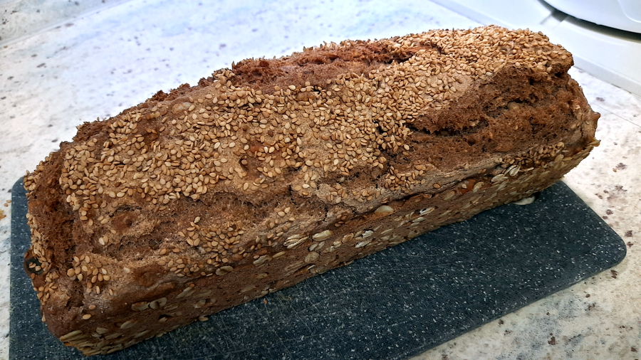 Bei der Herstellung dieses Brotes kann nicht viel schief gehen, wenn man sich grob an die Mengenangaben hält. Wenn das Brot richtig ausgekühlt ist lässt es sich gut in Scheiben schneiden und einfrieren. Wenn ihr die nötige Anzahl der Scheiben rund drei Stunden vor dem Verzehr aus dem Gefrierschrank nehmt schmeckt das Brot wie frisch gebacken. Es ist aber auch möglich, die Scheiben einfach in den Toaster zu geben. Ihr seht, es lohnt sich auch für Einzelpersonen, diese kreative Arbeit in Angriff zu nehmen.
