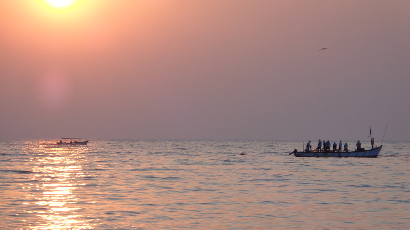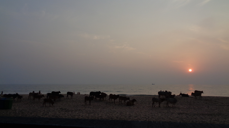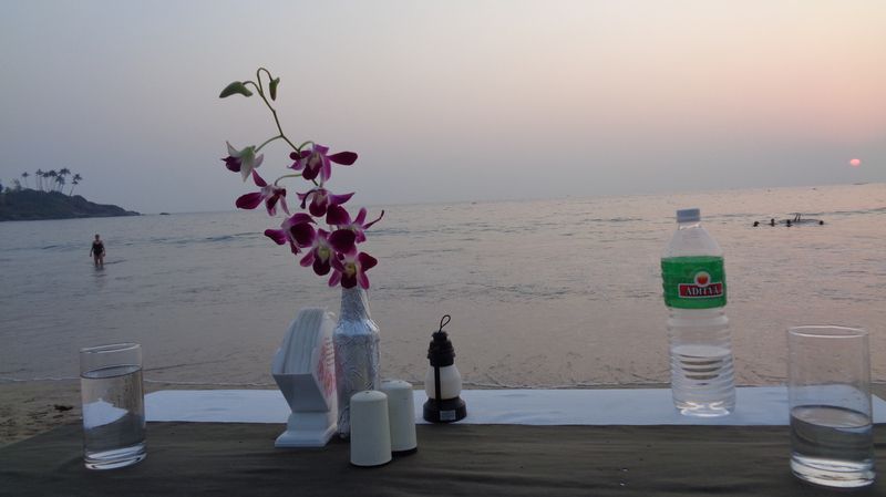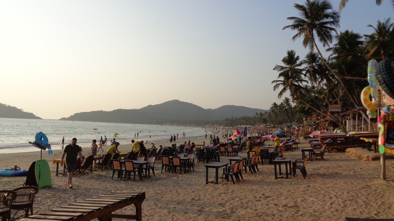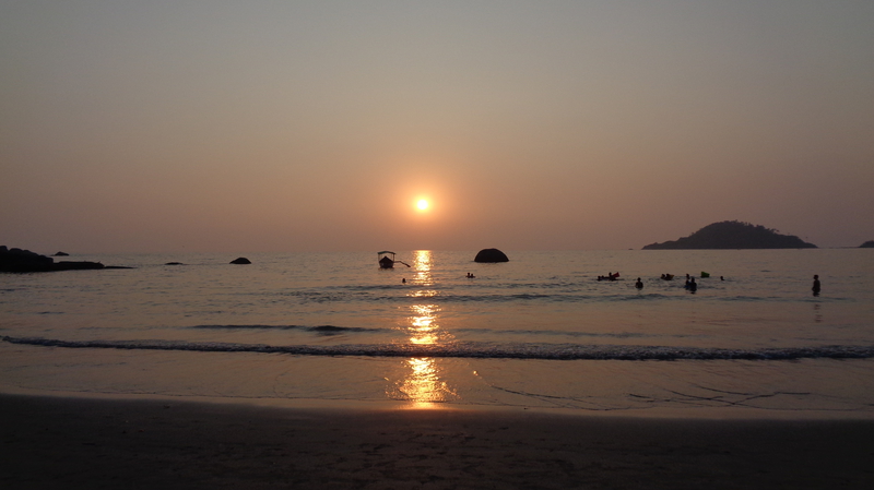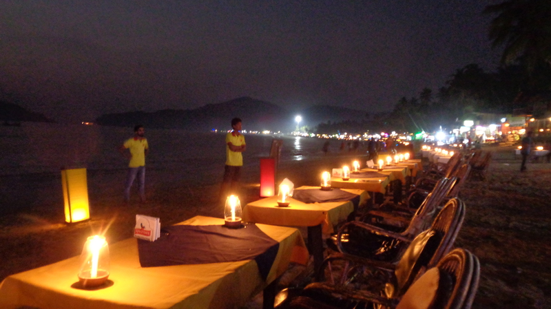 Palolem Beach war bisher einer der schönsten Strände, die wir erleben durften. Wir lernten dort einige Menschen kennen, die uns sehr ans Herz gewachsen sind. So waren die Bedienungen des „Dreams of Palolem“ alle überaus freundlich und zuvorkommend. Fast jeden Abend verbrachten wir bei einmaliger Atmosphäre in diesem Lokal den Sonnenuntergang. Es sah immer so aus, als würde die Sonne hier besonders schöne, farbenprächtige Schauspiele kreieren. Nach dem Untergang färbte sich dann der Himmel blutrot und es wurden in den ganzen Lokalen entlang des Strandes die Kerzen auf den Tischen angezündet. Beim Einsetzen der schlagartigen Dunkelheit ergab dies dann jeden Abend eine Romantik pur. Am Strand bei Kerzenschein, die Wellen des Meeres nur wenige Meter vor den Füßen, auf dem Tisch einen Teller mit duftendem Fisch und Gemüse… Und das alles auch noch zu einem unschlagbaren Preis- Leistungsverhältnis. Was will man mehr?