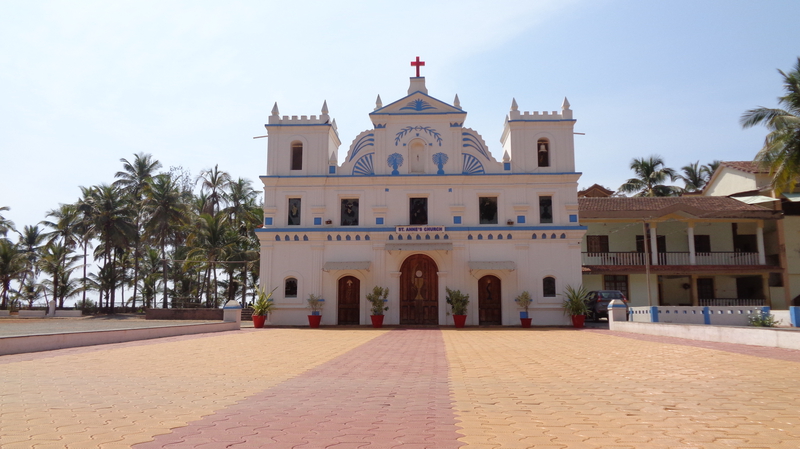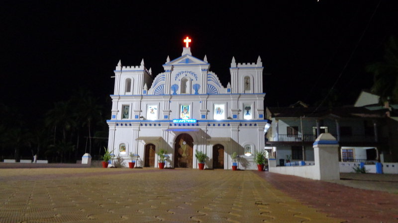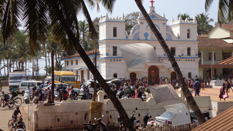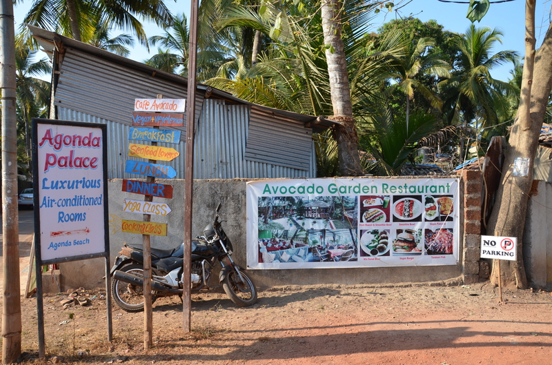 In Agonda angekommen, ging die Sucherei wieder los. Die Taxifahrer behaupteten zuvor immer, das Hotel zu kennen. Vor Ort fragen sie sich dann einfach durch. In unserem Fall war das Agonda Palace aber tatsächlich schnell zu finden. Der Ort selbst zog sich nur an der Hauptstraße entlang und gleich 100 m neben der zentral gelegenen Kirche lag das Hotel auf der, dem Meer abgewandten Seite. Wir wurden freundlich vom Manager, einem Nepalesen, begrüßt und er zeigte uns das Zimmer, welches aber noch hergerichtet werden musste. Unser erster Eindruck bestätigte sich später leider: Alles sehr dunkel, alles recht verkommen und völlig überteuert.