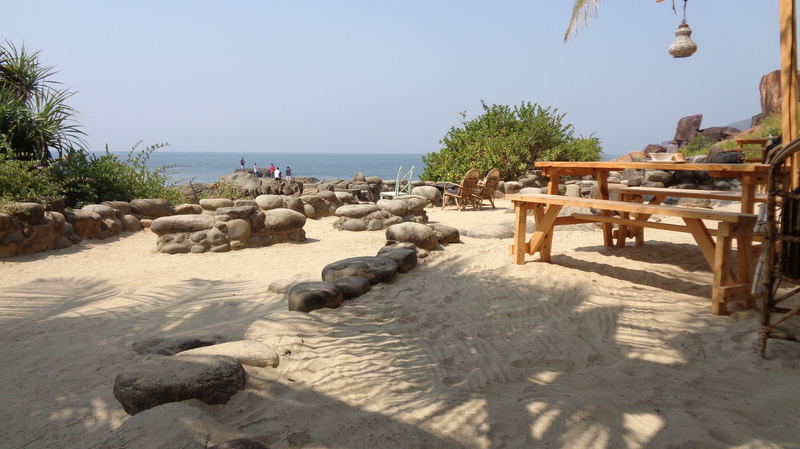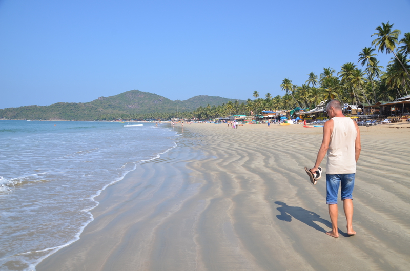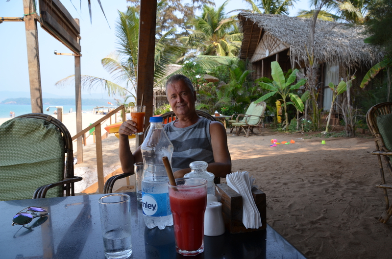 Dafür war auch hier der Strand einmalig schön und herrlich ruhig. Nur wenige Urlauber hatten den Weg an den Agonda Beach gefunden. Die Hütten am Meer entlang waren aber auch so teuer, dass wir mit unserem Palast zufrieden waren. Unter 80 € war da nichts zu bekommen und dann auch ohne Klimaanlage und in hinterster Reihe. Die Zimmer direkt am Meer, mit Klimaanlage und Terrasse kosteten schnell 120 bis 300 €. So war es uns schon lieber, die knapp 100 Meter bis zum Strand zu gehen. Dort machten wir dann täglich tolle Spaziergänge, vergnügten uns im Meer (selbst ich, als Nichtschwimmer, stand bis zur Brust im Wasser und ließ mich von den Wellen hin und her treiben) und hatten anschließend in einem der vielen Lokale ein leckeres Mittagessen.
