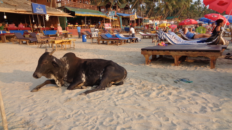 Was wir auch nicht wussten, war die Tatsache, dass in ganz Indien (ganz Indien???) das Rauchen verboten ist. Man kann überall Zigaretten kaufen, darf sie anscheinend aber nicht in der Öffentlichkeit rauchen. So erzählte uns Lin, unsere englische Freundin folgendes Erlebnis: Sie saß abends im Lokal am Strand, als das Auto der Lebensretter am Strand entlangfuhr und in ihrer Nähe anhielt. Sie und vier andere Raucher wurden von einem Polizisten, der auf dem Beifahrersitz saß zum-Auto zitiert und belehrt, dass das Rauchen verboten sei und sie deshalb jeder eine Strafe von 200 INR (3,80 €!!!) zu zahlen hätten, jetzt, in Bar und gegen Quittung. Dass ihre Nachbarin einen Joint in der Hand hatte und der Mann von der Sicherheit auf der Pritsche des Autos grinsend auch rauchte, interessierte den Polizisten wenig. Er füllte die Quittungen aus, kassierte das Geld und verwies darauf, dass ein erneuter Verstoß am gleichen Tag den doppelten Preis einer Strafe nach sich ziehen würde. Auch das ist Indien.