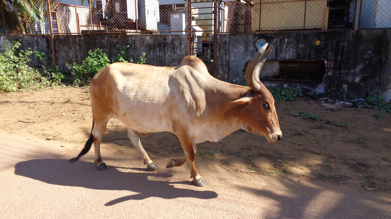 Die hinter uns liegenden Tage waren gefüllt von kleinen Momenten des Glücks. Mal war es das sehr freundliche Personal im Hotel, mal die bunt geschmückte Kuh, die von selbst feierlich angezogenen Indern durch die Reihen der Strandliegen geführt wurde, begleitet von lauter Musik, die aus einer Holzklarinette und einer Art Geige produziert wurde. Das überreiche Obstangebot war immer ein Glücksmoment. Achims begehrte Passionsfrucht kostete im Kilo meist um die 2 bis 3 €. Dafür bekommt man bei Rewe oder Kaufland zu Hause eben mal 2 oder 3 Stück. Und die sind dann noch sauer, während sie hier frisch geerntet sind und köstlich süß schmecken.