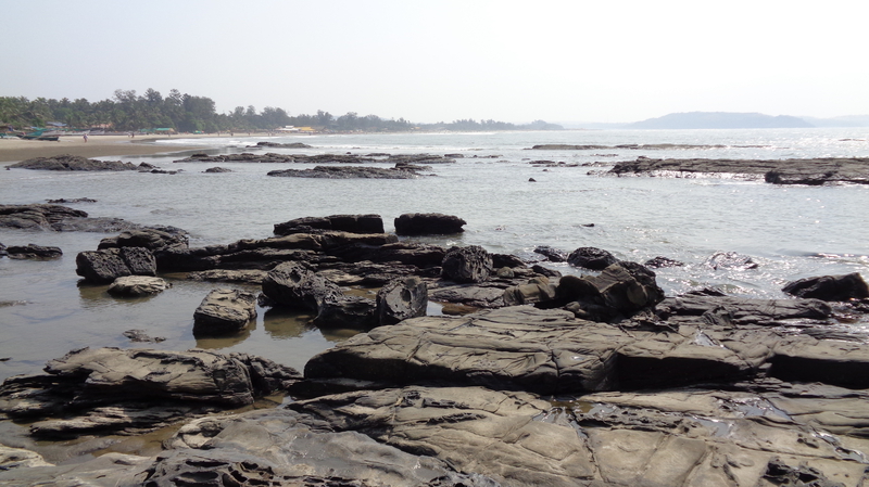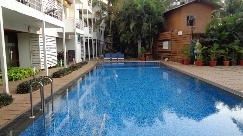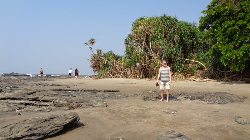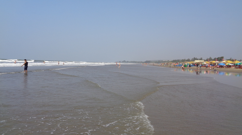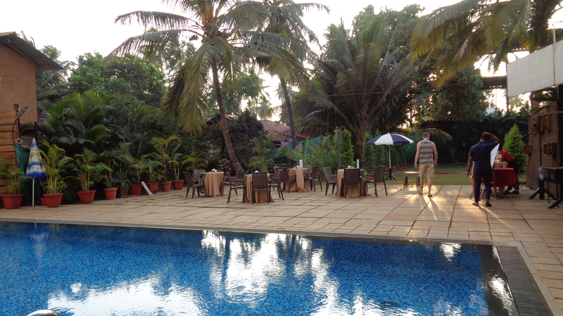 Während wir in dem riesigen Flughafen von Muscat dann auf den Weiterflug warteten, liefen wir eine Runde nach der anderen im Gebäude herum. Die Müdigkeit und die Zeitumstellung brachten unseren Kreislauf ins Wanken und wir sehnten uns nach einem schönen, weichen Bett, was leider unmöglich war. Aber auch diese drei Stunden gingen vorbei. Dafür ging der Flug nach Goa umso schneller vorüber. Kaum hatten wir das Essen bekommen und das Geschirr war abgeräumt, ging es schon wieder in den Landeanflug. Lag es vielleicht an der lebhaften Unterhaltung, welche die zwei Mädels neben mir führten? Selbst während des Essens war immer eine von den Beiden am Quasseln. Darum war ich nicht böse, dass der Flug so schnell verging. Die Einreise in Goa ging zügig voran. Das, von Achim bereits zu Hause vorbestellte Taxi ließ aber auf sich warten. Diese Minuten der Verspätung versuchte er durch Geschwindigkeit wieder auszugleichen. Er fuhr wie „eine gesengte Sau“. Allerdings war es noch früh (ca. 4.30 Uhr). So ging auch diese Stunde schnell vorbei. Dafür suchte er das Hotel allerdings auch über eine Stunde, fuhr in engste Feldwege und knapp an dutzenden von Hunden vorbei, die am Wegesrand oder auf der Straße schliefen. Als wir schließlich im Hotel ankamen, erwartete uns eine Hiobsbotschaft. Agoda, ein Buchungsportal im Internet hatte uns zwar eine Buchungsbestätigung geschickt, aber „vergessen“, das Zimmer für uns zu reservieren. Na toll, da standen wir nun morgens, gegen halb sechs und hatten kein Zimmer. Der Rezeptionist war angesäuert, da wir ihn schlafend hinter seinem Tresen fanden, und er so früh am Tag eigentlich noch nicht arbeiten wollte. Schließlich blieb uns nichts anderes übrig, als unseren Taxifahrer zu bitten, uns zu verschiedenen Hotels zu bringen, um ein Zimmer zu finden. Ein recht üppiges Trinkgeld machte ihm die Entscheidung leichter, obwohl er zuvor behauptete, schnellstens wieder zum Flughafen zurück zu müssen. Die Suche war dann schnell erfolgreich, der Zimmerpreis allerdings auch mehrals doppelt so hoch, wie in dem eigentlich gebuchten Hotel. Da es so früh am Tag war, mussten wir auch noch für den angefangenen Tag die Hälfte des Tagespreises bezahlen. Mittlerweile waren wir aber so erledigt, dass wir zu jedem Kompromiss bereit waren. Koffer aufs Zimmer und runter zum Frühstück. Danach probierten wir die Betten und kamen zu dem Entschluss, doch besser zwei Stunden zu schlafen. Daraus wurden drei. Der erste Gang in die nähere Umgebung war ganz angenehm, da dieses Hotel „Red Fox“, der rote Fuchs recht zentral lag. Der Geldwechsler hatte direkt vor der Tür sein Büro, die Obstfrau gleich gegenüber ihr Geschäft. Was konnten wir mehr erwarten? Den Tag verbrachten wir mit relaxen, Essen und netten Gesprächen mit dem Personal. Zu mehr als diesem waren wir allerdings auch nicht mehr fähig, wollten aber wegen des Rhythmus von Tag und Nacht tagsüber nicht zu viel schlafen. Das Restaurant im Hotel genügte uns für diesen Tag vollauf. Die Nacht war dann, trotz der üblichen, indischen Geräusche (Tauben gurrten, Hunde bellten und Leute quasselten) sehr angenehm. Während Achim etwas länger wach lag, schlief ich gegen halb zehn ein und habe bis halb neun durchgeschlafen. Mit Elan machten wir uns fertig und setzten uns im Restaurant auf die hintere Terrasse, wo wir die einzigen Gäste waren und die übliche Musik nur gedämpft zu hören bekamen. Ging einer zum Büfett, musste der andere am Tisch bleiben, da sich sonst die Krähen direkt über unser Frühstück hergemacht hätten. Das indisch – internationale Büfett war lecker, vielfältig und scharf.