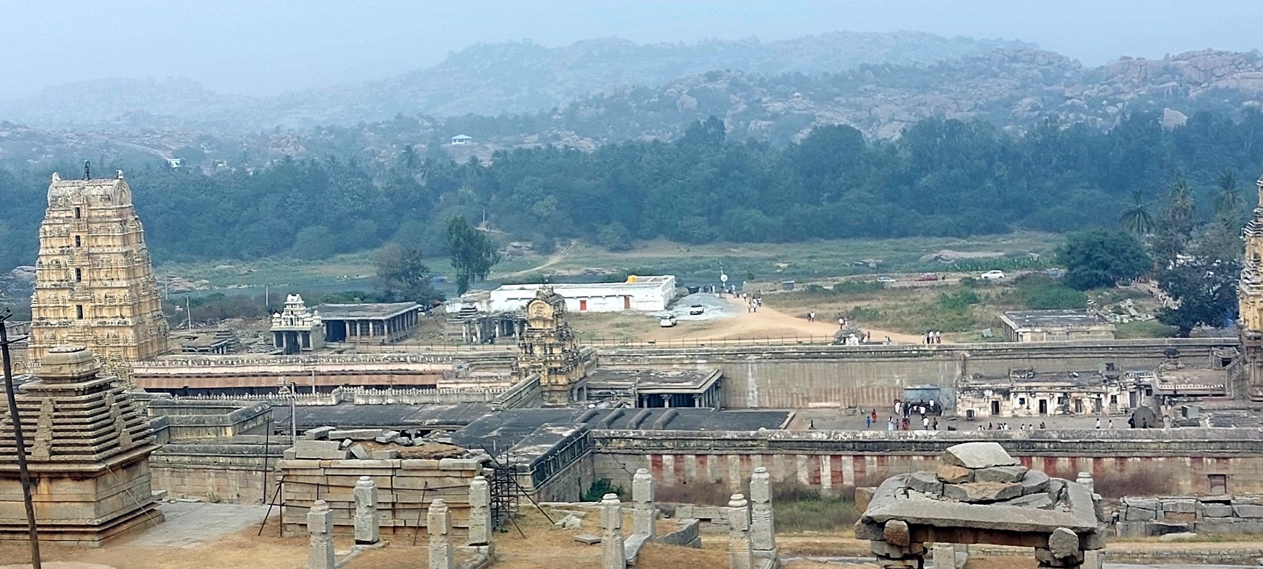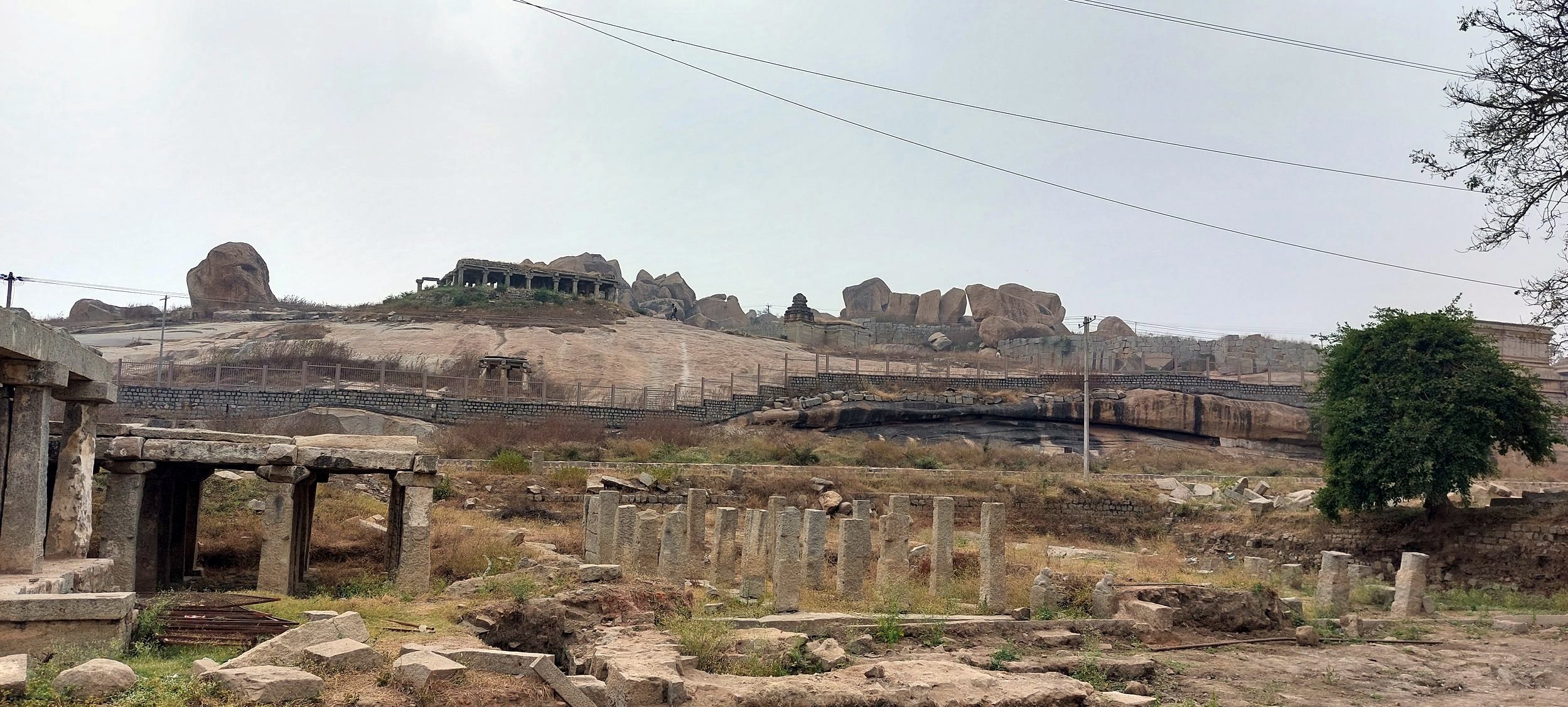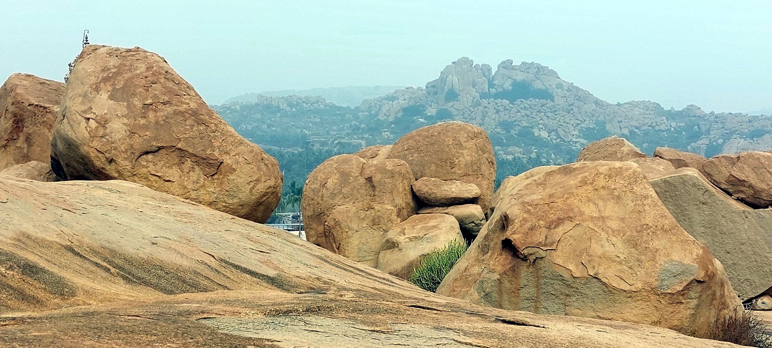 Die Nacht wird immer wieder von Hundegebelle und Gekläffe unterbrochen. Spätesten, wenn der Muezzin sein Rufen aus verschiedenen Richtungen im Dorf erschallen läßt, fangen die Hunde im ganzen Dorf an zu jaulen.Allerdings glaube ich nicht, dass dies zu Ehren Gottes geschieht. Temperaturmäßig ist Hampi für uns eine Offenbarung. Da die Fenster Tag und Nacht offen sind, wird es Nachts sogar so kühl, dass man eine leichte Decke braucht. Auch bei Tag sind die Temperaturen durch den anhaltenden Wind so angenehm, dass man die meist 26 bis 30° längst nicht so warm, bzw. heiß empfindet. Wir merken, dass wir uns im "Hochland" von Karnataka befinden. Ein kräftiger Unterschied zum Arambol Beach.