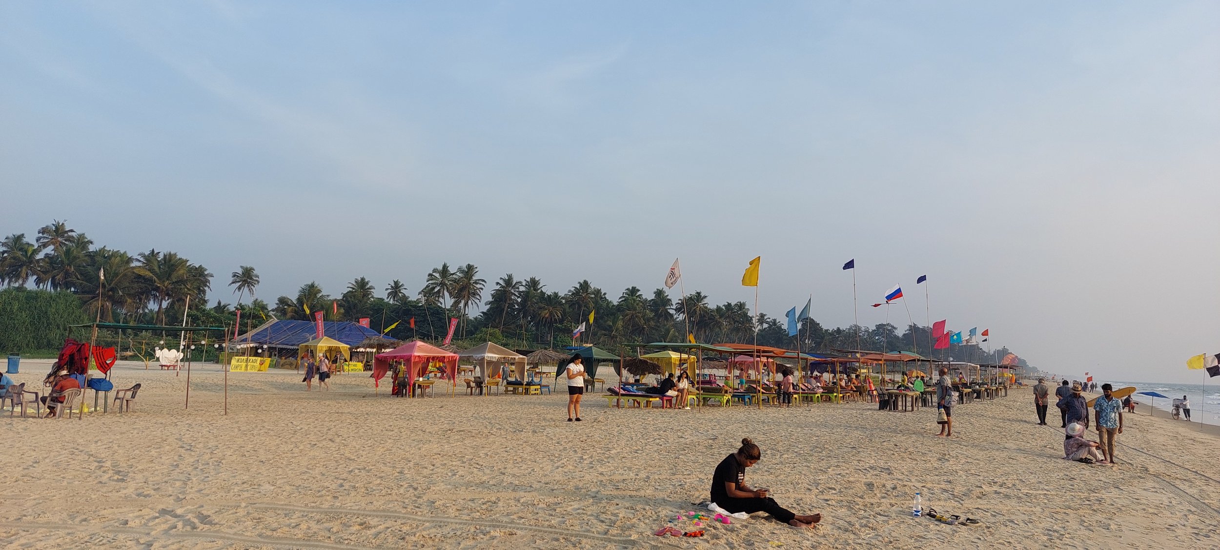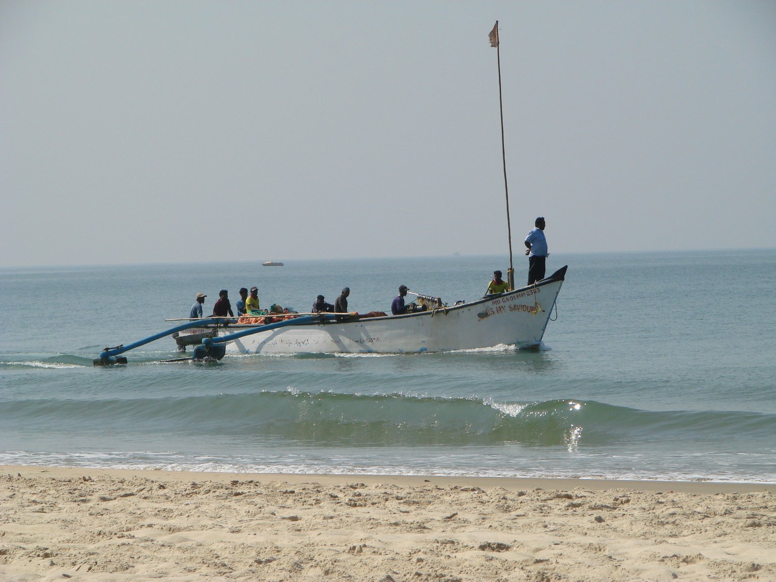 Ein Tag hebt sich in der Zeit hervor: Mit den verschiedenen Verkäuferinnen, die am Strand Shirts, Tücher, Schmuck und sonstiges Nippeszeug verkaufen, verstehen wir uns ganz gut. Zwei von ihnen setzen sich öfters zu uns neben die Liegen und erzählen von den schweren Zeiten, denen sie ausgesetzt sind, weil zu wenig Touristen da sind und von denen auch kaum jemand etwas kauft. So laden wir sie mal wieder zu einem Getränk ein, meist eine Cola oder ein Sodawasser mit Zitrone. An einem Donnerstag sitzen wieder zwei neben uns, drei andere lassen ihre Sachen einfach vor dem Lokal stehen und setzen sich - wie normale Kunden - an einen Tisch. Eine unserer Verkäuferin fängt an, einige Halsketten und Schmuckarmbänder unter Achims Handtuch zu schieben. Beide beugen sich so weit es geht hinter die Liegen. "Was ist los?" "Polizei..." ist die monotone Antwort. Tatsächlich stürmen zwei Polizistinen in Uniform und ein Beamter in Zivil ins Lokal. Natürlich sind die Verkäuferinnen durch ihre Kleidung schnell zu erkennen und werden nach einigem hin und her abgeführt. Die Tüten, welche unsere Verkäuferin um Achim herum trappiert hat, werden alle eingesammelt und Polizei und Verkäuferinnen marschieren Richtung Parkplatz. Die Sachen unter dem Handtuch werden nicht entdeckt, da Achim sich einfach nach hinten anlehnte - und keiner den Schmuck entdecken konnte. "Was machen wir jetzt mit den Sachen?" fragen wir die Bedienung des Lokals. "Wartet ab, die kommen bestimmt und holen alles ab. Das passiert immer wieder..." Tatsächlich kommt zwei Stunden später ein gut angezogener Inder und stell sich als der Ehemann von Sima, der Verkäuferin vor.Dankend und freudestrahlend nimmt er den Schmuck mit. Unsere Bedienung unterhält sich noch mit ihm und bestätigt uns anschließend, dass es sich tatsächlich um den Ehemann handelte. Kann ja jeder kommen.