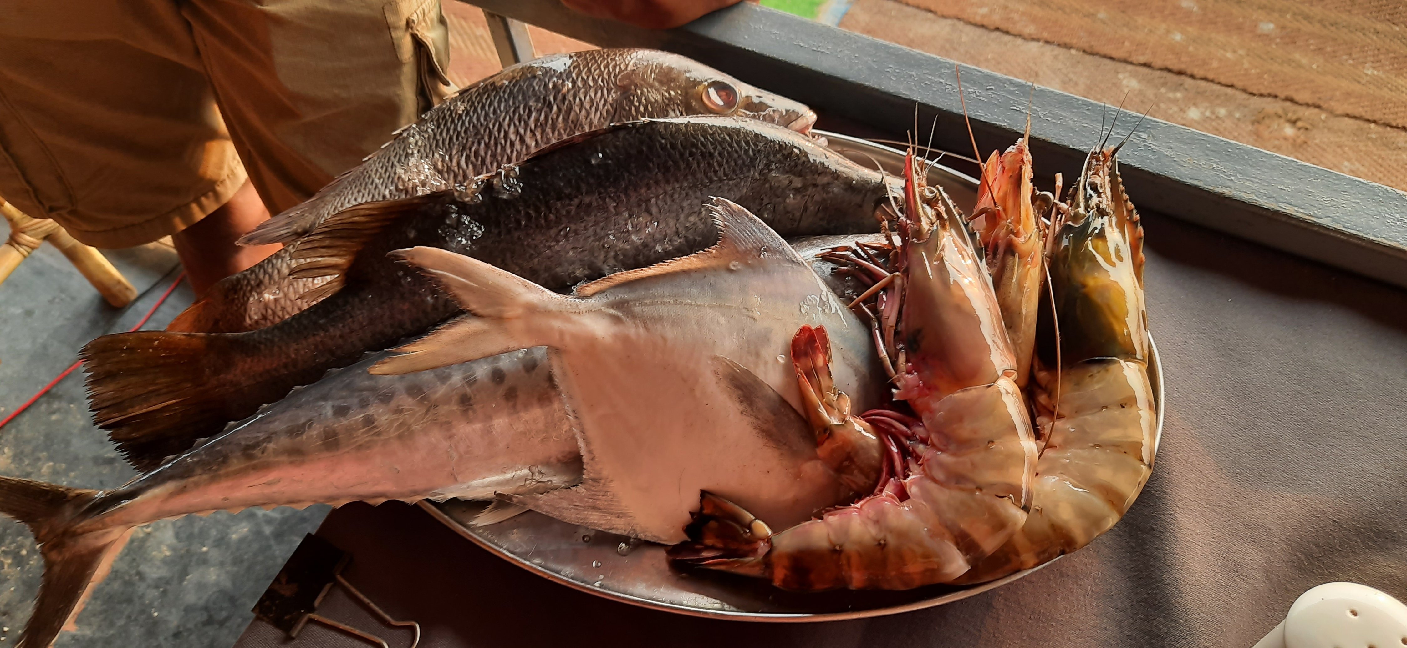 weil wir durch herbfallende Kokosnüsse Schäden an verschiedenen Hütten haben! Die fünf Hütten, die rechts im Hof in einer Reihenbauweise stehen, sehen jedoch tatsächlich gut im Schuß aus. "Du hast doch vor zwei Tagen angefragt, wann wir kommen", erwidert Achim. Erst da bewegt sich der gute Mensch zu seinem PC hinter den Tresen. "Oh, sorry, das betrifft auch nicht euren Bungalow. Der ist fertig..." Keiner da, der uns hilft die Koffer in die Hütte zu bringen. Der Manager stellt den Ventilator und die Klimaanlage an (das beherrscht jedes Personal, in allen Anlagen Indiens) zeigt uns das angrenzente Badezimmer - und geht. " Vergesst nicht, gleich die Pässe an die Rezeption zu bringen und den Aufenthalt direkt in bar zu bezahlen," bemerkt er beim Verlassen der Hütte. "Nein, nur Cash", ist die Antwort auf Achims Frage, ob Kartenzahlung möglich ist. Der Service hier scheint perfekt. Im Badezimmer sind die Wände rundum bis auf 20/30 cm Höhe feucht und fleckig. Alles riecht muffig. Im Zimmer steht ein Kühlschrank, der aber nicht funktioniert und im Regal kann nichts gelagert werden, da die Böden schmutzig und verstaubt sind. Obenauf können nur unsere zwei Koffer deponiert werden. Wir schauen uns an und sind uns einig: So nicht! Wir rufen den Manager und versuchen ihm zu erklären, dass wir in dieser Hütte nicht bleiben werden und wir uns lieber nach einer anderen Unterkunft umsehen. "Nein, nein. Ich habe noch eine andere Hütte, da ist mehr Platz..." Er führt uns in den nächsten Verschlag, der tatsächlich ein richtiges, einigermaßen sauberes Regal zu bieten hat."Wenn mein Personal heute Abend kommt, können die den Kühlschrank aus dem Regal nehmen und nebendran stellen. Handtücher bekommt ihr natürlich auch heute Abend..." Wären wir nur unserem 1. Impuls gefolgt und hätten uns eine andere Bleibe gesucht.
