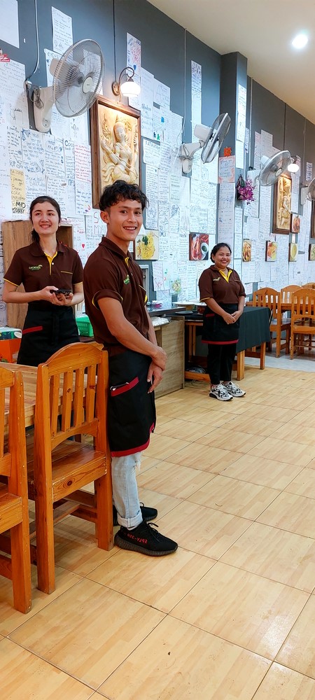 Fast pünktlich kommt der Van. Der Fahrer nimmt an zwei weiteren Hotels Gäste auf. Kurz nach 18 Uhr sind wir am Saal von Simon Cabaret. Es ist recht lebhaft. Trotzdem bekommen wir zügig unsere Karten. Kurz darauf treten die ersten Lady-Men mit einer „Gesangsprobe“ auf. Sie werden mit riesigem Applaus begrüßt. Leider sieht man sehr deutlich, dass ihre Busen aus einer Hartplastikschale bestehen. Alles andere an ihnen sieht topp aus. Als wir auf unserer Reise 2013 in der Show waren, wurde noch viel mehr Wert auf „Cabaret“ gelegt, heute ist es eine perfekt eingeübte Show: Laut, schnell und bunt.