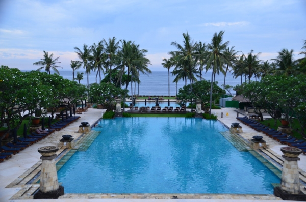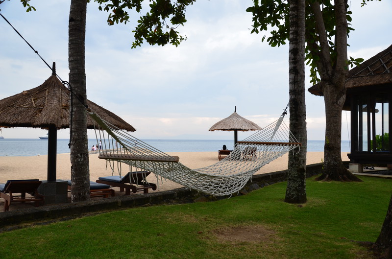 Jetzt sitze ich hier auf einer Liege am Strand von Legong in Benoa, beobachte das lebhafte Treiben auf dem dunkelblauen Meer und sehe Regula und Achim, wie sie sich im abgeteilten Bereich für Schwimmer im Wasser tummeln. Ein herrliches Bild des Friedens und der Ruhe, welches ich euch gerne genauer vermitteln würde. Diese Stimmung ist mehr ein Gefühl, welches von Herzen kommt und lässt sich darum schlecht in Worte fassen. Vor zwei Tagen haben wir unseren letzten, gemeinsamen Ausflug gestartet und uns den Kecuk Tanz im Tempel am Meer (während des Sonnenuntergangs) angesehen. Gestern gönnten wir uns einen ganz besonderen „Luxus“: wir kauften im Conrad by Hilton Hotel eine Tageskarte für die tolle Poollandschaft. Zusätzlich ergab es sich, dass wir einen Pavillion am Meer mieten konnten, in dem wir ein tolles Mittagessen genießen, auf asiatischen Sitzkissen das Treiben auf dem Meer beobachten, lesen oder Dösen konnten. Wir fühlten uns sauwohl. Auch die Regenwolken, die aufzogen und den Himmel verdunkelten, konnten uns nicht schrecken. Wir saßen schließlich im überdachten, kleinen Pavillion und konnten im Falle eines Regengusses einfach die Regenjalousie runterlassen. Der Pool unterteilte sich in mehrere Abschnitte, die eines gemeinsam hatten: sie waren so warm, dass man sich zu Hause in der Badewanne oder in den heiligen, heißen Quellen fühlen konnte, wenn man die Augen schloss. Auf der Terrasse im dritten Stock, mit herrlicher Aussicht auf das Gelände und das Meer, lud uns Regula noch zu einem leckeren „Sun Downer“ ein. Der leichte Regen, der dann einsetzte, konnte uns die gute Laune auch nicht mehr verderben. Heute macht sich Regula nun wieder auf den Weg, zurück in die kalte Schweiz. Wir fliegen morgen nach Thailand, wo wir vier weitere Wochen verbringen, bevor wir Mitte April in das (bis dahin hoffentlich) frühlingshafte Deutschland zurückkommen.
