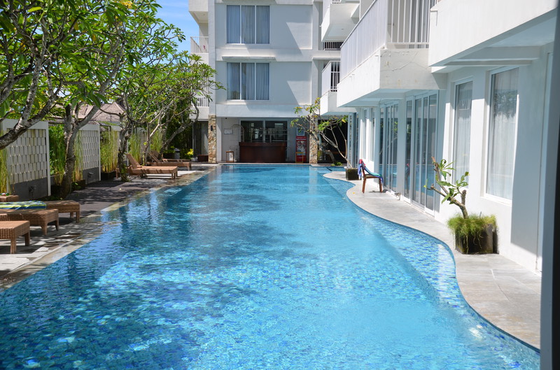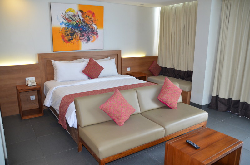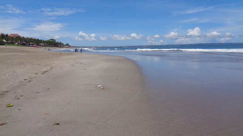 Wochen, von denen wir jeden einzelnen Tag richtig genossen haben. Sowohl vom kulturellen, wie auch vom kulinarischen erlebten wir immer wieder Überraschungen. Von Ubud ging es per Taxi nach Seminyak, zurück an die Küste. Die Fahrt mit dem Taxi dauerte genau eine Stunde. Der Abschied von dem freundlichen Personal in Ubud fiel uns richtig schwer. Vielleicht aber auch darum, weil wir uns bewusst waren, dass jeder Abschied uns einen Schritt näher an den Abschied von Bali bringen würde. Das Hotel in Seminyak war dann das „erste, große Hotel“. Das Paragon verfügte über vier Gebäude mit je fünf Etagen. Zum Komplex gehörte ein riesiger Pool mit rund 35 m Länge. Direkt beim Check In bekamen wir ein Upgrade angeboten, da wir sechs Nächte blieben. So bewohnten wir zwei nebeneinander liegende Junior Suiten mit direktem Zugang zum Pool. Solch einen Luxus hatten wir auf der ganzen Reise noch nicht. Das Zimmer selbst war fast so groß, wie unsere Wohnung in Köln. Neben einem großen Doppelbett gab es eine Sitzecke, eine komplette Kochnische und eine zusätzliche Leseecke. Nicht zu vergessen den großen Schreibtisch und das Badezimmer, welches aus den drei Teilen: WC Bereich, Dusche, Wanne und Waschbecken bestand. Allerdings stellten wir schnell fest, dass dieser Luxus seinen Preis fordert. In den Regeln für den Pool stand u.a. dass die Zeiten der Nutzung von 7.00 bis 20.00 Uhr festgelegt sind. Natürlich hielten sich nur wenige daran. So ging der Krach vor unserem Zimmer oft schon gegen halb sechs los und endete erst gegen Mitternacht. Beschwerden verliefen meist im Sand. Auch hatten wir mit den Busladungen von Asiaten zu „kämpfen“, die nicht nur den Pool verstopften, sondern auch beim Frühstück wie die Heuschrecken über das Buffet herfielen. Ganz zu schweigen von der Lautstärke der Unterhaltung. Da sitzen sich sechs Frauen an einem Tisch gegenüber und schreien sich an, als müssten sie von der deutschen Seite des Bodensees sich mit der anderen auf der Schweizer Seite verständlich machen. Die dritte, vierte, fünfte und sechste stimmten dieser unverständlichen Unterhaltung in der gleichen Lautstärke zu. Manches Mal half es tatsächlich, wenn auch wir zwischendurch einen lauten Schrei ausstießen. Schlagartig war dann Ruhe und die Unterhaltung wurde in normaler Lautstärke fortgeführt. Leider kamen jeden Abend mindestens zwei Busladungen von Chinesen, Japanern oder Koreaner an. Erst, wenn sie am Morgen wieder abfuhren, kehrte (meist) Ruhe ein. In Seminyak machten wir dreimal herrliche Spaziergänge am Strand, wobei ich mir doch etwas „das Fell verbrannte“. Den Einen Tag liefen wir über drei Stunden bis hinunter nach Legian / Kuta. Dort genossen wir das Mittagessen in einer typisch asiatischen „Fressmeile“. Man deponiert an der Kasse auf einer Karte einen bestimmten Betrag, mit dem man an jedem der rund 30 Stände sich sein Mahl selbst zusammenstellt. Es gibt alle möglichen Köstlichkeiten aus den verschiedenen Regionen Asiens. Dazu kommen Saft und Getränkekioske, sowie Dessertmöglichkeiten. Danach lässt man sich an der Kasse den Restbetrag wieder auszahlen. Dieses System würde zu Hause bestimmt auch gut laufen.