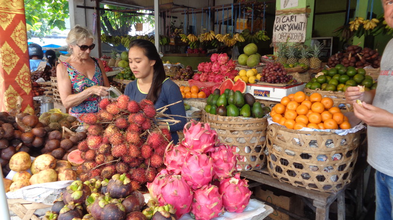 In den sieben Tagen in Seminyak probierten wir manches Restaurant, landeten aber immer wieder im Warung Sobat und zum Mittagessen beim Italienischen Cafe. Beide haben tolle, frische Salate. Einige der Lokale sind einfach überteuert. So erlaubten wir uns im spanischen Tapasladen, wieder zu gehen, da wir in der Gesamtsumme locker auf 60 bis 80 Euro gekommen wären, für balinesische Verhältnisse ein enorm hoher Betrag, gleichbedeutend mit dem ein bis 1 ½ fachen Monatsgehalt eines Arbeiters. Ein „normales Essen“ kostete uns mit Getränken im Schnitt um die 5 bis 8 Euro.