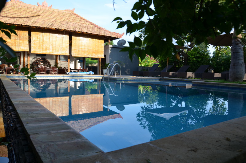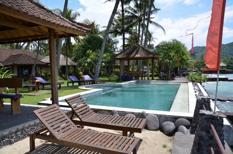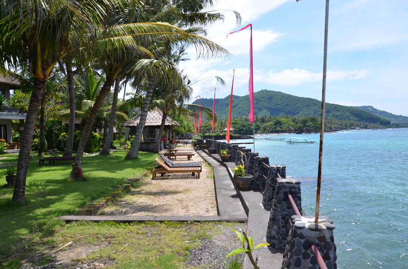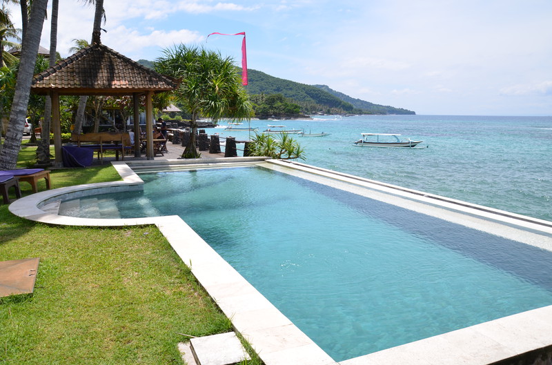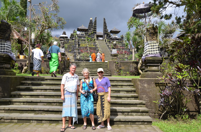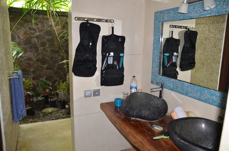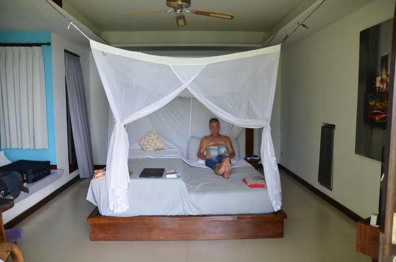 Nun aber mal zu den schönen Seiten unseres Urlaubs. Regula geht es nach wie vor sehr gut und wir freuen uns gemeinsam über jeden Tag. So kamen wir in Candidasa im Amarta Resort an. Die erste Nacht verbrachten wir in zwei reizenden Bungalows, die sich aber dann mehr und mehr als „3.Klasse“ herausstellten. Erst ein Upgrade in die große, helle und saubere Villa machte uns den Aufenthalt am Meer zum einmaligen Erlebnis. Ein riesiges Badezimmer, teils unter freiem Himmel erschien uns wie das Paradies. Das zum Hotel gehörende Restaurant und die kompetente Führung der Anlage machte unser Glück perfekt. Wir machten einen Tagesausflug zu den Wasserpalästen, historischen Stätten der Königsfamilie und zum Muttertempel Besaki. In Besaki legte ich mich etwas mit der Mafia der Führer an, da sie nicht mit dem Trinkgeld zufrieden waren. Als ich unser Geld zurückforderte und alleine losziehen wollte, gaben sie sauer bei. Allerdings spulte der Führer dann nur sein „Pflichtprogramm“ ab und wir liefen große Teile des Gebietes ohne ihn. Schade, wie verfallen die riesige Anlage bereits ist. Wenn sie weiterhin nur Eintritt verlangen und nichts für die Anlage tun, hat sich bald alles erledigt.