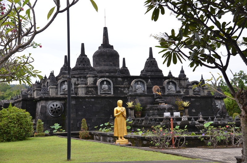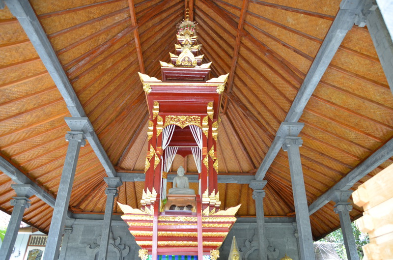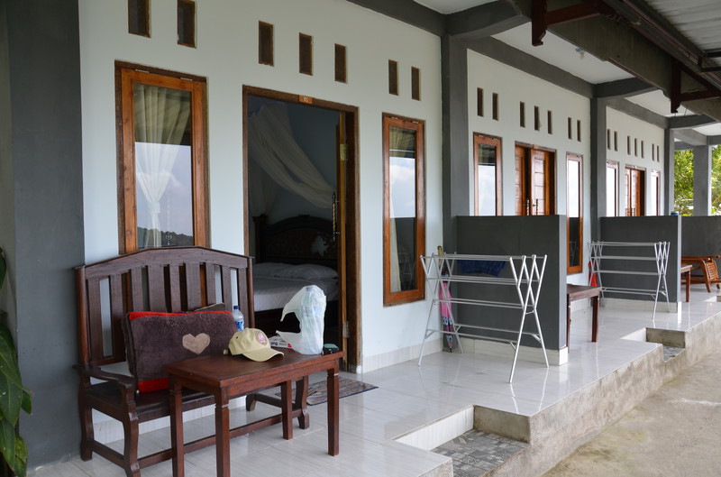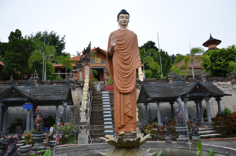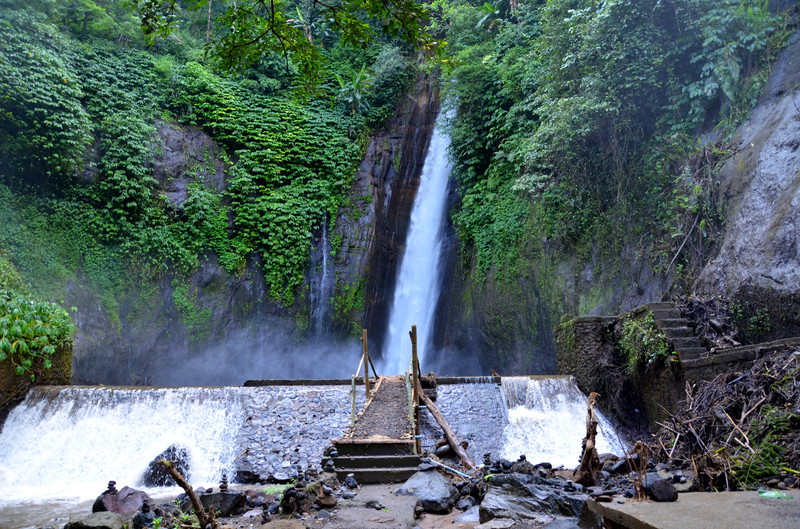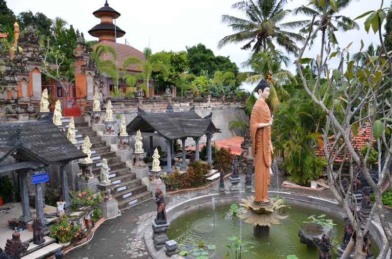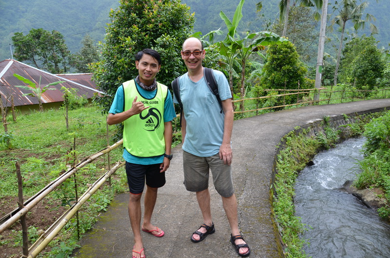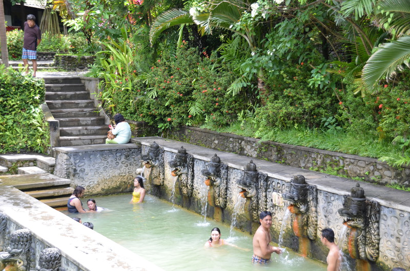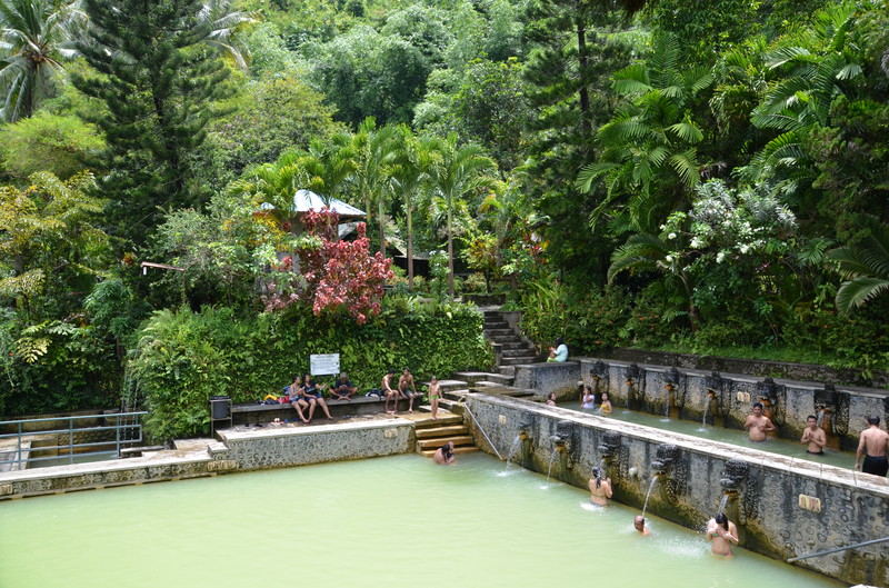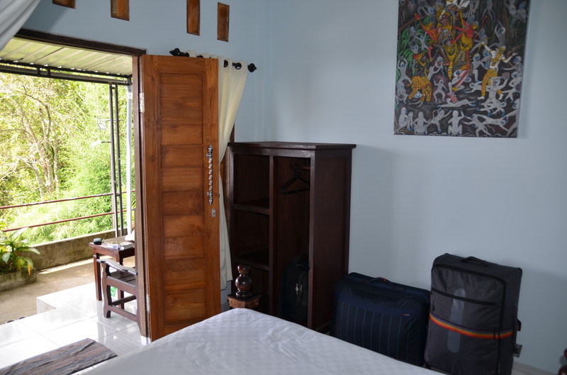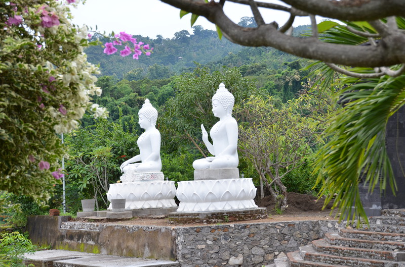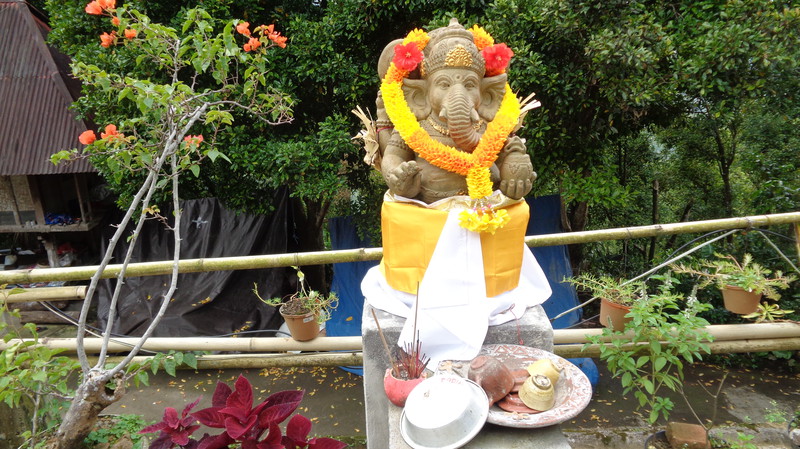 Die Fahrt von Lovina in die Berge war dann kurvig und lange. Auf dem Weg hierher machten wir halt im einzigen buddhistischen Tempel auf der Insel, der zur Zeit renoviert wird, aber auch so einen tollen Anblick bietet. Danach ging es zu den heiligen, heißen Quellen, wo die Zwei dann eine Stunde schwimmen gehen. Viele Serpentinen und Kilometer weiter erreichen wir Adilas Homestay in Munduk, einem verregneten und kühlen Dorf. Zum Essen gehen wir meist in die Anlage gegenüber, da die lecker kochen. Adila kocht leider fad und geschmackslos und lässt alles vor dem Servieren stehen, bis es genug abgekühlt ist. Habt ihr schon mal kalte Nudeln mit fader Soße gegessen? Nun, die drei Tage werden auch vorbeigehen. Ohnedies verbringen wir viel Zeit an den Computern, um Bilder zu bearbeiten oder zu schreiben oder wir legen uns lesend unter die Bettdecken. Was will man bei den Regengüssen auch machen? Gestern regnete es über Stunden, heute wieder. Für die nächsten Tage sieht die Wettervorhersage leider nicht besser aus. So freuen wir uns ganz besonders auf die Tage danach, die wir in Ubud, im Herzen Balis zubringen werden.