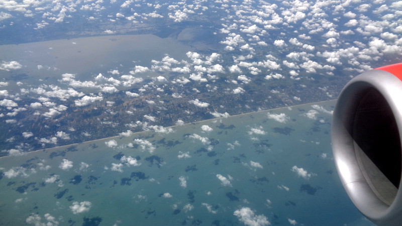Am nächsten Morgen kam dann die Betreiberin der anderen Anlage und brachte uns das Frühstück: für jeden zwei Beutelchen Instant Kaffee und drei Doppelscheiben Toast mit undefinierbarer Marmelade. Das war es. Um halb zehn checkten wir aus. Unser Taxi zum Flughafen wartete bereits auf uns. Da wir den check in am Flughafen schon im Internet erledigen konnten, hatten wir schon unsere festen Plätze. Allerdings galt dies nur für den Flug bis Kuala Lumpur, wo wir dann nach Denpasar umsteigen mussten. Wir waren froh, dass wir nicht lange anstehen mussten und unsere schweren Koffer schnell loswurden. Der Flug ging pünktlich los und auch die Landung in KL verspätete sich nur wenig. Dann stimmten aber Gate und Uhrzeit des Starts überhaupt nicht mehr überein. Mit der Bahn mussten wir zunächst in einen ganz anderen Teil fahren, wo dann aber alles gut ging, da das Boarding um eine halbe Stunde verschoben wurde. Es waren dann ohnedies nur rund 50 Personen, die nach Bali wollten. Jeder hätte sich quer über drei Sitze legen können. Auf diesem Flug gab es dann endlich was Richtiges zu essen, nachdem es auf dem Flug zuvor nur Käse gab. Es gab die Wahl zwischen Pizza oder überbackenem Hühnchen. Beides nichts für mich. Jetzt gab es Reis mit scharfem Gemüse und gekochten Kartoffeln. Darüber gaben wir die Cashew Nüsse, die ich noch im Handgepäck hatte. Das erste warme Gericht, seit 24 Stunden. Köstlich. Dann erlebten wir ein deftiges Gewitter über den Wolken. Überall dicke, schwarze Wolken und unzählige Blitze, die immer wieder durch die undurchdringliche Dunkelheit huschten. Gespenstisch. Aber es ging schnell vorbei