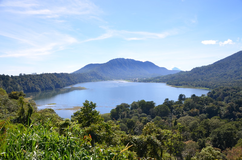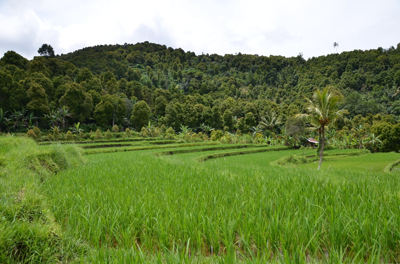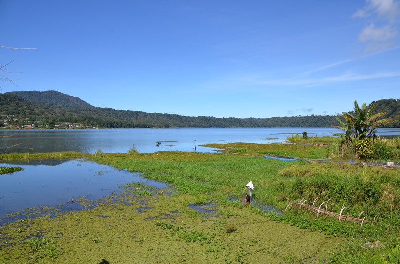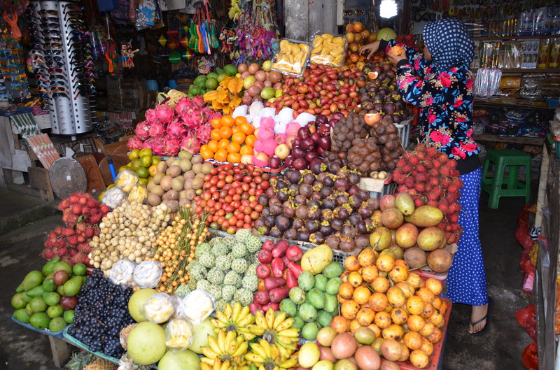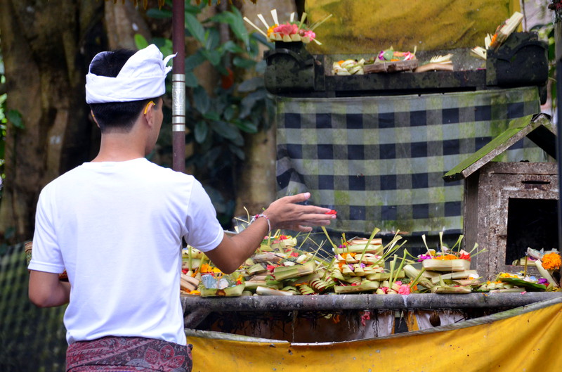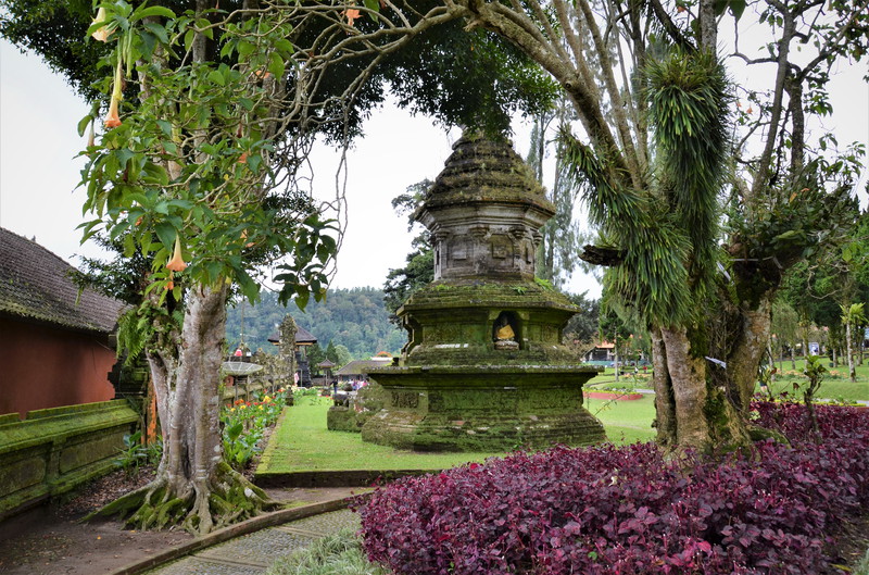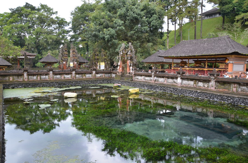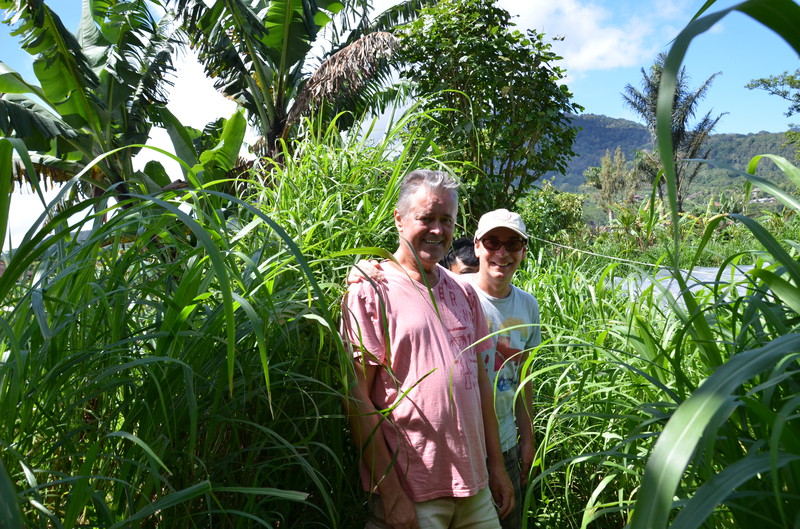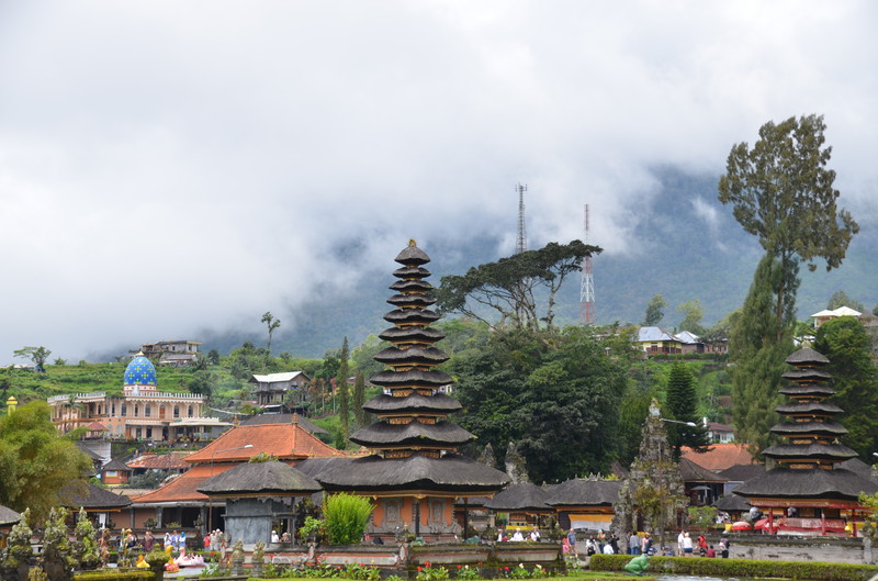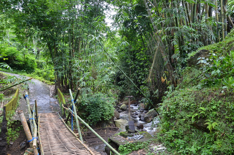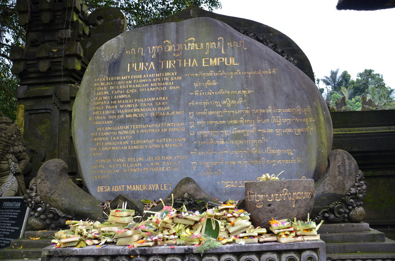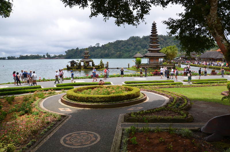 In Munduck machten wir noch einen Tagesausflug bis auf die Höhe von über 1400m.M. Dabei besichtigten wir u.a. einen Tempel, der am Rande eines Sees lag und tatsächlich mal überwiegend neu, bzw. renoviert war. Dafür kamen die Touristen in Massen und man wurde mehr geschoben, als dass man gehen konnte. Den letzten Abend verbrachten wir dann in der Pension Adila und die Chefin kochte uns etwas ganz besonders leckeres: Regula und Achim bekamen ein Fisch Curry nach Art des Hauses. Auf der Fahrt ins „warme Zentrum“ Balis, Ubud, was zugleich das kulturelle Zentrum darstellt, machten wir Halt in Jatiluwi, den größten, zusammenhängenden Reisterrassen Balis, die seit einigen Jahren zum Weltkulturerbe gehören. Eine Wohltat für die Augen, wenn man die unzähligen, grünen Schattierungen anschaut. Das Mittagsbuffet, welches wir dort im Lokal für 7.50 Euro einnahmen, war ebenfalls ein Genuss – für Leib und Seele. Allerdings waren die heißen, heiligen Quellen, die ganz in der Nähe liegen sollten eine Erfahrung der besonderen Art. Allein die Zufahrt war fast kriminell zu nennen und es war erstaunlich, dass unser Fahrer das Auto unbeschadet durch die riesigen Schlaglöcher brachte. Die Quelle selbst war dann verschmutzt und alles andere als einladend. Die Badefläche selbst war kaum größer als eine größere Badewanne. So schauten wir uns die Anlage an, setzten uns wieder ins Auto und schaukelten zurück zur Hauptstraße. In Ubud tobte dann das Leben, wenn auch zunächst nur Verkehrsmäßig.