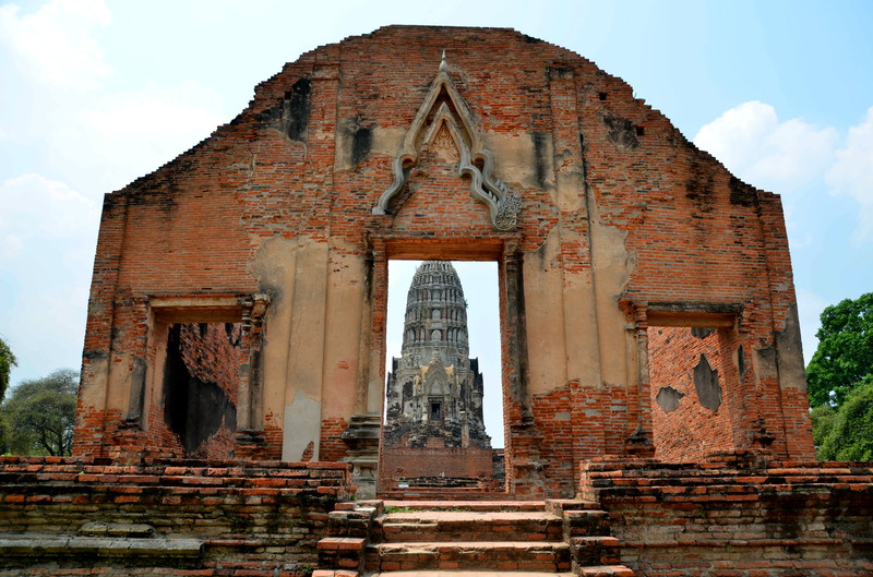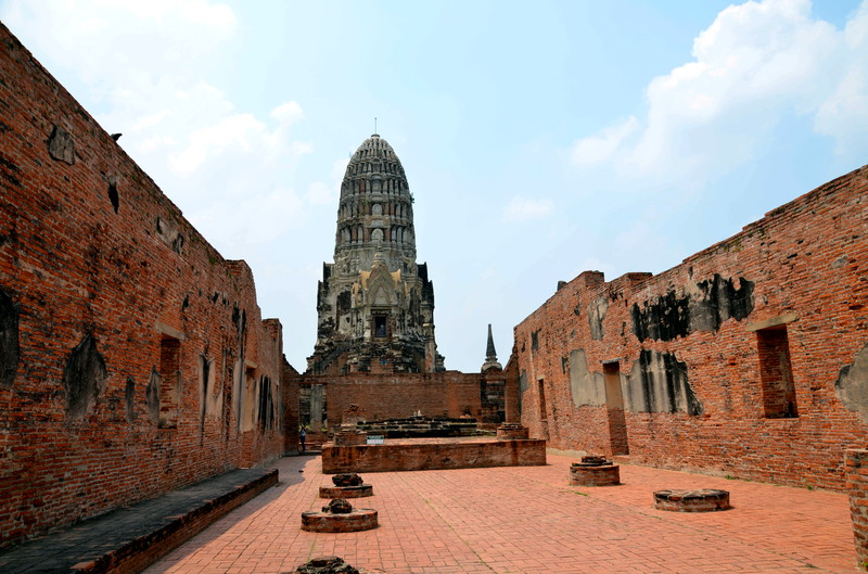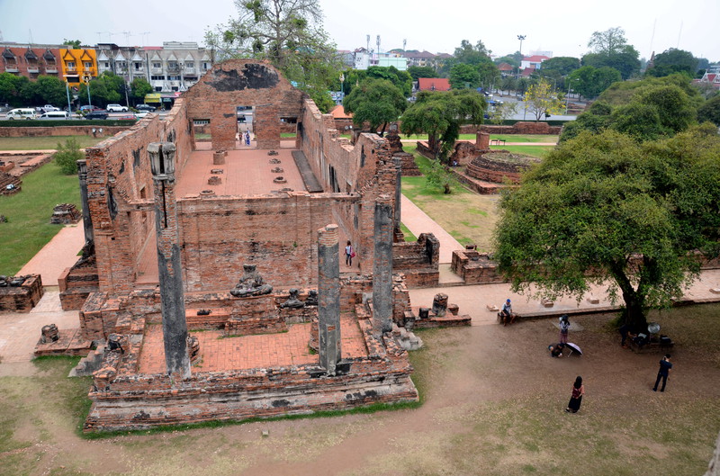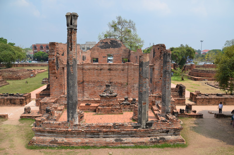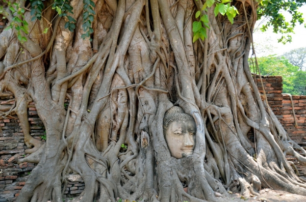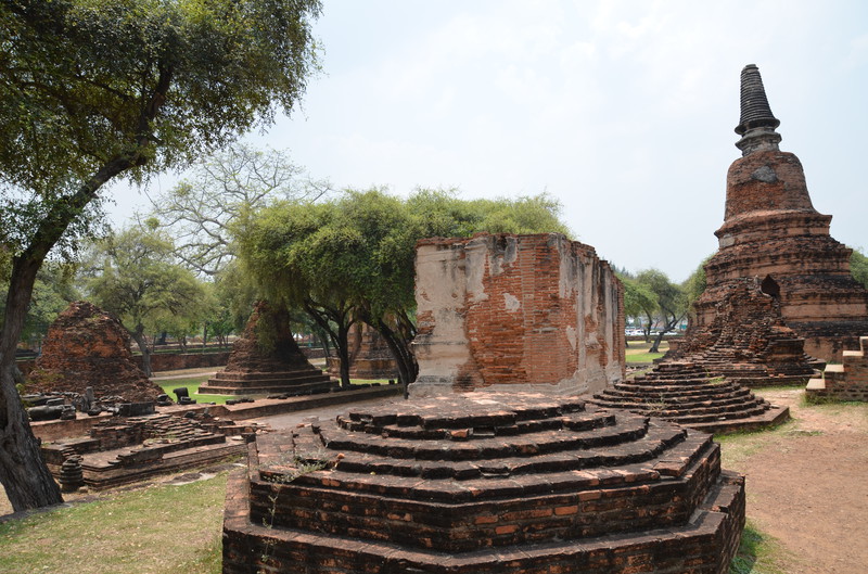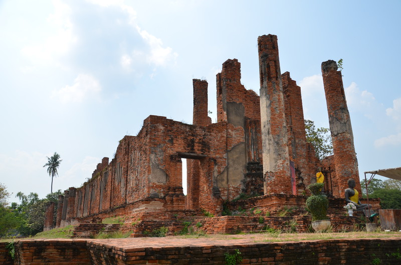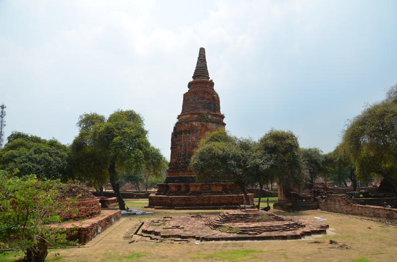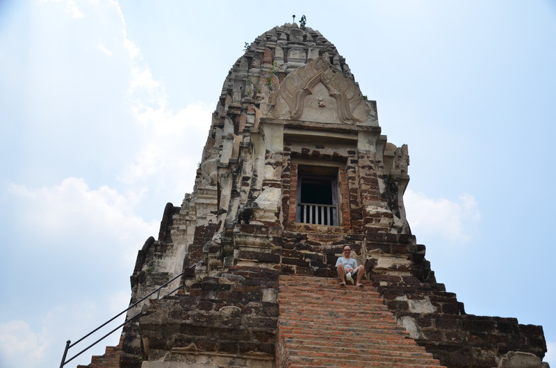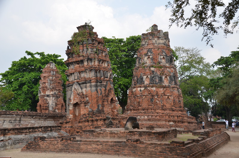 In Bangkok angekommen, lassen wir uns vom Taxi ins Prime Hotel Center Station fahren. Das Hotel liegt 150 m vom Hauptbahnhof entfernt und befindet sich im 6. Bis 16. Stock. Dadurch bekommt man vom Lärm des Verkehrs kaum was mit. In den 54 Euro für die Übernachtung ist bereits das tolle Frühstücksbuffet für zwei Personen enthalten. Gleich am 1.Abend gehen wir zum Bahnhof und kaufen die Bahnkarten nach Ayutthaya, wo wir am nächsten Tag hin wollen und in den Süden nach Prachuap Khirikhan einen Tag später. Alles geht völlig unkompliziert. Wir bekommen Karten für die 2. Klasse nach Ayutthaya und im Schlafwagen in den Süden für insgesamt 1650 THB / rund 48 Euro (für zwei Personen!), da in dem Zug alle besseren Plätze ausverkauft sind. In Ayutthaya machen wir die Erfahrung, dass nicht alle Thais freundlich sind. Zwei Tuk Tuk Fahrer werden laut, beschimpfen uns und geben ihrer Hoffnung Ausdruck, „dass wir nie die Tempel finden mögen“, nur weil wir ihr völlig überteuertes Angebot ablehnen. In einem „Tourenbüro“ geht Achim auf die Toilette und wird anschließend vom Betreiber laut beschimpft, weil das WC nur für Kunden zur Verfügung stünde. Wir nehmen schnell Reißaus. Die riesige Tempelanlage finden wir schließlich, besichtigen aber nur drei der sechs Tempel. Anschließend haben wir genug „Steine gesehen“. Einige der Steintürme machen den Eindruck, als würden sie jeden Moment umfallen. Im 2. Tempel laufen umfangreiche Restaurierungen. Den Kopf des Buddhas, der von den Wurzeln eines Baumes umschlungen und der in allen Reiseführern abgelichtet ist, finden wir auch. Der 3. Tempel ist für uns besonders schön, da er noch von Mönchen betrieben wird und diese im Tempel eine „Notstation“ für über 70 kranke Hunde eingerichtet haben. Auch die Buddhafiguren in den zwei Tempeln sind sehenswert. Achim lässt sich von einem Mönch segnen und bekommt ein buntes Bändchen ans Handgelenk. Danach gehen wir zurück in Richtung Bahnhof und essen unterwegs in einem Lokal noch ein typisches Pad Thai (Nudelgericht). Es ist sehr heiß und die Sonne brennt unbarmherzig vom Himmel. Bis zum Bahnhof laufen wir eine gute 3/4 Stunde. Die Rückfahrkarten, die wir zuvor schon für den Zug um 17 Uhr gekauft haben, können wir unproblematisch umtauschen (40 THB / 1,10 Euro pro Person für 1 ½ Std. Fahrt!). Da eben ein unplanmäßiger Zug nach Bangkok einfährt, steigen wir einfach ein. Allerdings fahren wir in der völlig überfüllten 3. Klasse, da die 2. Klasse ausgebucht war. Jedenfalls ist hier die Lüftung gut, da alle Fenster offen sind. Nach einem Drittel der Fahrt ergattern wir sogar einen Sitzplatz. Abends machen wir einen Spaziergang rund um unser Hotel. Auf dem Nachtmarkt essen wir für 3,50 Euro (zu zweit!) jeder einen Teller Reis mit verschiedenen, teils scharfen Beilagen. Ein Eis aus dem Supermarkt ist unser Dessert und kostet fast so viel, wie das ganze Essen. Von der Dachterrasse unseres Hotels sehen wir ganz in der Nähe einen hell erleuchteten, mehrstöckigen Tempel. Wir nehmen uns vor, diesen morgen noch zu besuchen. Der Besuch von Ayutthaya war so anstrengend, dass wir in der Nacht schlafen wie die toten, obwohl sich die Bewohner im Nachbarzimmer,( nur durch eine einfache Tür getrennt) streiten.
