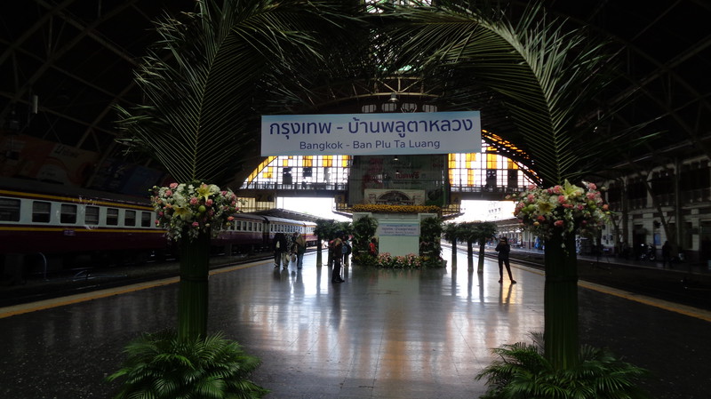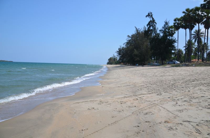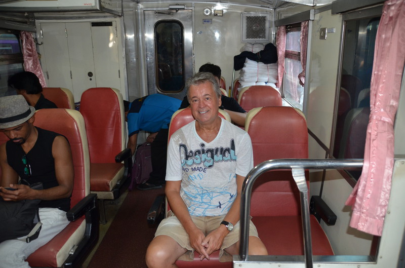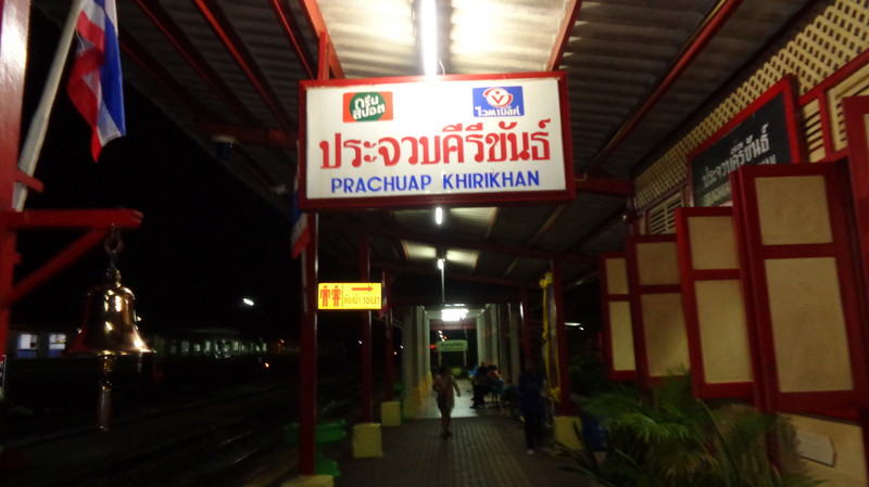 Danach gehen wir ins Hotel und packen unsere Koffer. Die wenigen Meter zum Bahnhof schaffen wir zu Fuß ganz gut, auch wenn unzählige Taxis durch ihr Hubkonzert anbieten, uns zu fahren. Unser Zug steht bereits auf dem Gleis. Im letzten Wagen haben wir zwei Plätze mit genug Raum, unsere schweren Koffer zu deponieren. Später stellt sich heraus, dass wir uns tatsächlich im Schlafwagen befinden und die Sitze zu einer Liegefläche umgeklappt werden können. Es ergeben sich dann oben und unten je ein Bett, welches mit Matratze, Kissen, Decke und Vorhang ausgestattet ist. Für uns lohnt sich der Umbau jedoch nicht, da wir „schon“ in fünfeinhalb Stunden am Ziel sein sollten. Die Betonung liegt auf sollten. An jeder Haltestelle steigen Verkäuferinnen ein, die Essen, Getränke, Süßigkeiten oder Obst anbieten. Wir lesen, dösen oder genießen einfach nur die Landschaft, die an uns vorbeirauscht. Oft sehen wir Reisfelder, soweit das Auge reicht. Mal sind sie frisch umgepflügt, mal schon bepflanzt. Bis Hua Hin braucht der Zug eine Ewigkeit. Wir schauen auf den Plan, den Achim im Internet ausgedruckt hat. Die Proportionen der Strecke stimmen mit der Realität überhaupt nicht überein. Plötzlich entdecken wir auf der Rückseite des Hotelvouchers, dass wir eigentlich bis Bankrut fahren müssen. Was nun? Wir haben nur Karten bis knapp eine Stunde vor Bankrut. Wir entscheiden, ab Prachuap Kirikhan ein Taxi zu nehmen. Als der Zug langsamer wird, geht Achim zum Schaffner, um zu fragen, wann wir endlich am Ziel sind. Dieser wird ganz aufgeregt. „Schnell, ihr müsst raus…“ Na toll, hätten wir nicht gefragt, wären wir einfach übers Ziel geschossen. Er dirigiert uns zur nächsten Tür und hilft uns, die Koffer nach draußen zu hieven. Die untere Stufe des Zuges ist mindestens einen halben Meter vom Boden entfernt – und wir stehen mitten in Stein und Geröll. Da der Zug lang ist und wir uns im letzten Wagen befinden, müssen wir unsere Koffer gut 300 m durch Steine und Dreck ziehen, bis wir den eigentlichen Bahnsteig erreichen. Der Zug fährt los, wir stehen im Nirgendwo. Ein kleiner Bahnhof, ohne die Möglichkeit, ein Taxi zu bekommen. Der Tuk Tuk Fahrer, der sich anfangs freute, Kundschaft zu bekommen, reagierte schnell ernüchtert, da unser Ziel mindestens 50 km entfernt liegt. „Taxi gibt es hier keine…“ Auch die junge Frau am Bahnschalter kann uns nicht weiterhelfen. „Ihr müsst mit dem Zug um halb zehn nach Bankrut fahren…“ Achim fragt nach einem Telefon. „Hat nur der Bahnvorsteher, da können wir nicht ran…“ Ihr Englisch ist kaum zu verstehen. Sie zeigt Achim eine Telefonzelle, die aber nur mit Karte funktioniert. Karte kann man morgen am Kiosk kaufen. Na wunderbar – und nun??? Achim fragt in die Runde, die sich am Warteplatz vor dem Bahnhof aufhält, ob jemand ein Handy hat. Eine junge Frau reicht ihm bereitwillig ihr Phone. So kann er in der Hotelanlage in Bankrut anrufen und unsere Situation erklären. „Bleibt am Bahnhof stehen, in 10 Minuten ist ein Auto da und holt euch ab…“ Mindestens etwas, was klappt. Nach 20 Minuten ist immer noch kein Auto da. Dafür kommt die junge Frau angelaufen und reicht Achim ihr Phone. „Wo seid ihr? Wir sind mit dem Auto am Bahnhof in Bankrut,“ meldet sich ein junger Mann. „Nicht in Bankrut, wir stehen in Prachuap Khirikhan.“ „Dann müsst ihr mit dem Zug nach Bankrut fahren. Wir warten da. Der Zug braucht eine Stunde. Wenn er pünktlich ist, seid ihr um halb elf hier. Bis später.“ Fahrkarte bekommen wir nur für die 3. Klasse, jedoch reservierte Sitzplätze. Zwei Plätze kosten rund 2,50 Euro. Die Frage nach einem Restaurant beantwortet der Tuc Tuc Fahrer mit dem Hinweis: da vorne, in der Straße – da, wo das Licht brennt. Die Koffer könnt ihr einfach hier stehen lassen. Hat der eine Meise? Mitten am Dorfplatz, im finsteren Nirgendwo sollen wir einfach unser Gepäck stehen lassen? Wir fragen den Mitarbeiter im Bahnhof. „Stellt die Koffer dort drüben hin. Ich passe darauf auf.“ So stehen sie mindestens am beleuchteten Gleis. Wir laufen die 150 m bis zum Lokal. Keiner sitzt drin. Schräg gegenüber gibt es ein 2. Lokal. Da dort einige einheimische Gäste sitzen, setzen wir uns auch und bestellen. Da die Karte nur unzureichend in Englisch ist, bestellen wir irgendetwas, was wir meinen, dass es gut sein könnte. Mein Hühnchen mit Knoblauch und Reis ist zwar sehr trocken, aber gut. Achims Tom Yum Kung Suppe ist sauscharf. Mit einer Flasche Wasser spülen wir kräftig nach. Zusammen zahlen wir knapp 4 Euro. Unsere Koffer stehen noch am gleichen Fleck. Auf dem Fahrplan sind bereits 10 Minuten Verspätung angeschrieben. Kurz danach werden daraus 20 Minuten. Der Bahnhofsmitarbeiter kommt zu uns, studiert unsere Fahrkarte und zeigt uns, wo wir stehen sollen. Und genau da, hält der Zug kurz darauf und wir können einsteigen. Unsere Plätze sind belegt und wir müssen die Familie „vertreiben“, die sich da schlafend eingenistet hat. Hätten wir nicht die schweren Koffer gehabt, hätten wir uns auch auf andere Plätze setzen können. Frischluft haben wir genug, da wieder alle Fenster offen sind. Tatsächlich kommen wir eine Stunde später in Bankrut an und werden sofort von dem jungen Mann aus dem Hotel begrüßt. Mittlerweile ist es halb zwölf und wir sind fast 12 Stunden unterwegs. Unsere Koffer werden auf einen Pic Up geladen, dessen Ladefläche nach Fisch duftet. Im inneren des Autos hätte man auch mal etwas aufräumen können. Was soll es, Hauptsache wir kommen endlich an. Das Sunshine Paradise Resort liegt einsam und alleine irgendwo am Strand. Viel sehen wir bei Nacht ohnedies nicht. Der junge Mann lässt uns die Anmeldung ausfüllen, kopiert die Ausweise und bringt uns etwas entfernt ins Hotel mit 15 Zimmern. Das Zimmer ist zweckmäßig und modern eingerichtet. Das Bett ist grenzwertig hart, ein fast leerer Kühlschrank steht in der Ecke und an der Seite ist ein kleiner Garderobenständer mit zwei K