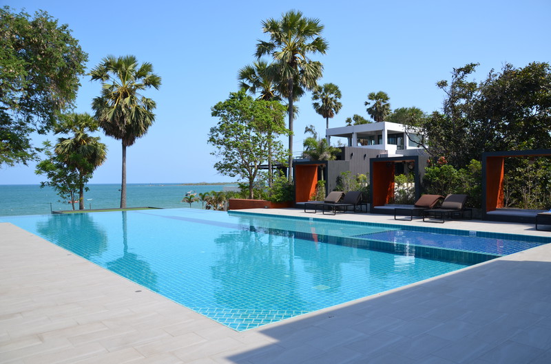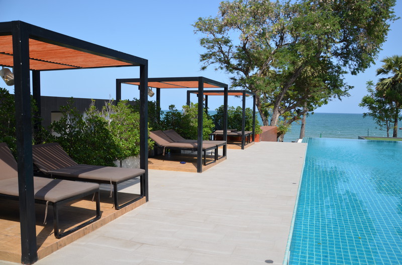 Im Infinity Pool kann man toll übers Meer schauen und sich den Wind um die Nase wehen lassen. Am ersten Tag gehen wir ein Stück links am Meer entlang, am nächsten Tag wollen wir einen längeren Spaziergang zur rechten Seite machen. Allerdings kommen wir keine 500 m weit. Aus einer baufälligen Anlage stürmen vier kläffende Hunde auf uns zu, bellen, knurren und bleiben mit gefletschten Zähnen kaum einen halben Meter vor uns stehen. Die eine Töle versucht immer wieder nach unseren Beinen zu schnappen. Achim haut ihr sein Shirt um die Ohren, welches er in der Hand trägt. Wir schreien die Biester an, was aber nichts nutzt. Wir weichen immer weiter ins Wasser zurück. Zu unserem Glück sind die Hunde etwas Wasserscheu. Das laute Bellen lockt zwei Leute herbei, die ebenfalls aus der Anlage kommen. Sie haben Stöcke und Palmwedel dabei und scheuchen die Hunde in die andere Richtung davon, wobei der besonders aggressive Köder immer wieder versucht, zu uns zu gelangen. Ab da verbringen wir unsere Zeit in der Anlage. Der 25 m große Pool, der zeitweise ganz uns alleine gehört, macht uns das recht leicht. Je drei Stunden am Morgen und am Nachmittag werden so zu unseren Poolzeiten. Dazwischen geht Achim auch mal ins Meer. Das Essen im Restaurant ist lecker, wenn auch etwas teurer als bisher. Dafür kann man sicher sein, dass es scharf ist, auch wenn man ohne Chili bestellt. Man gewöhnt sich gut daran. Einen Tag haben wir ein Taxi bestellt, welches uns in die Stadt gefahren hat, damit wir unsere Bahnkarte für die Weiterfahrt besorgen, auf der Post (vergebens) nach Briefmarken für meine Sammlung schauen und im 7-11 Supermarkt Bier, Kaffee und einige Lebensmittel einkaufen konnten. Sechs Flaschen Bier kosten da so viel, wie zwei Flaschen im Restaurant. Da waren die 11 Euro fürs Taxi schnell wieder hereingeholt. Fünf herrliche Urlaubstage sind hier schon um, fünf weitere liegen noch vor uns. Wir fühlen uns hier richtig wohl. Täglicher Sonnenschein, blauer Himmel und ein türkis- bis dunkelblaues Meer! Dazu Temperaturen von 30 bis 35°C. Was können wir uns mehr wünschen?