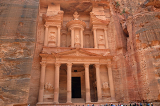 Um kurz nach halb zehn geht der Ausflug nach der vergessenen Stadt Petra los. Es sind 14 Busse, die sich mit je bis zu 40 Personen auf die Fahrt begeben. Unser Reiseleiter - Fati - lebte 15 Jahre in Münster/Westf. und spricht ein ausgezeichnetes Deutsch. Er nutzt die zwei Stunden Fahrzeit, um uns viel über sein herrliches Land und die Königsfamilie zu erzählen. Das braun gebrannte Land fliegt an uns vorbei, mit Bergen und Tälern. Als wir im Tal von Petra ankommen, ist jeder voller Spannung und Vorfreude auf dieses "Weltwunder".