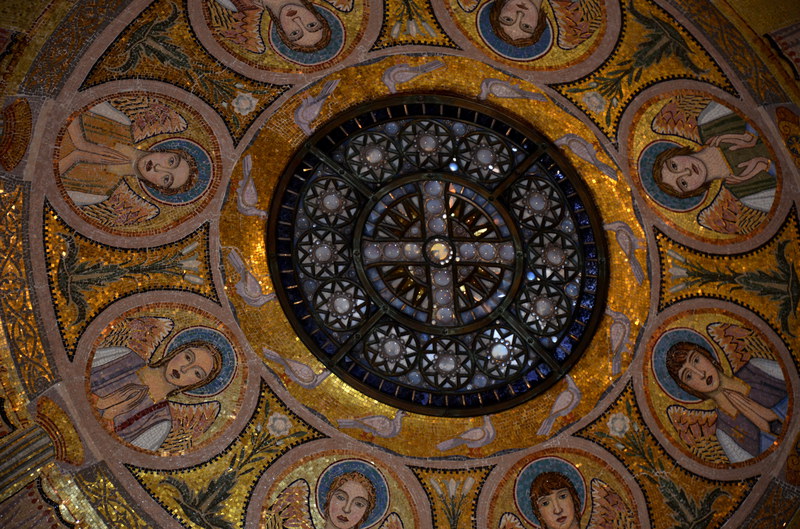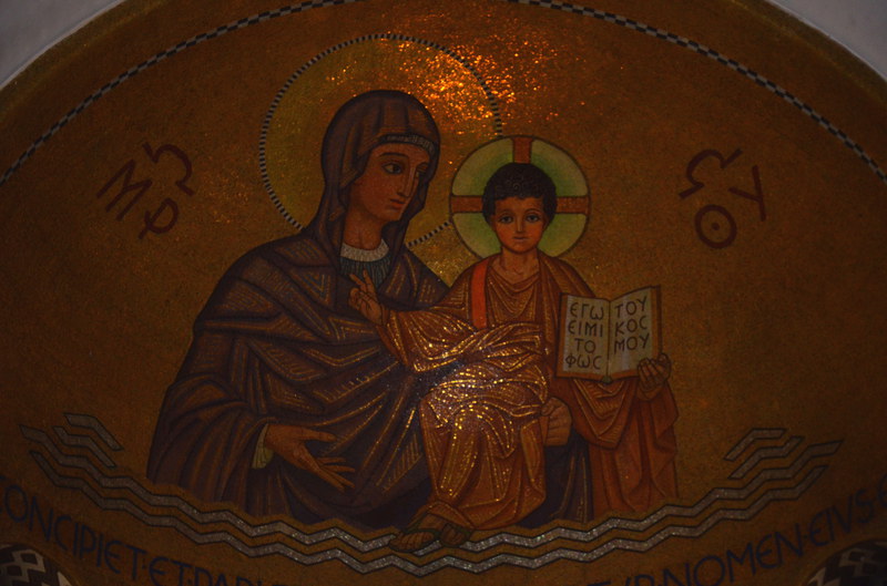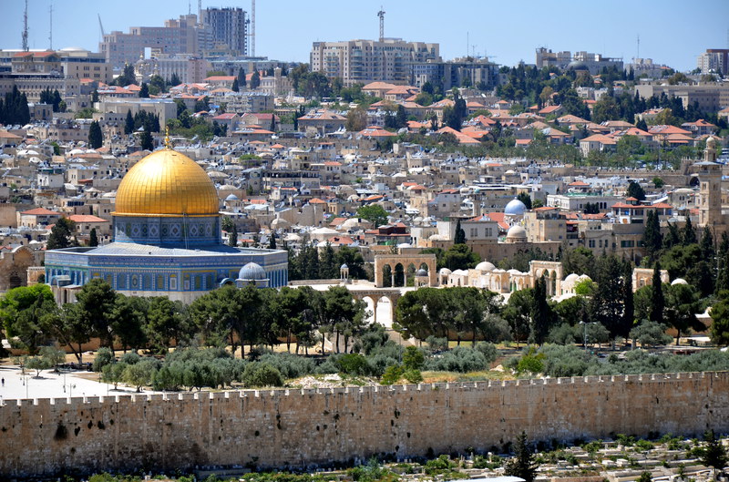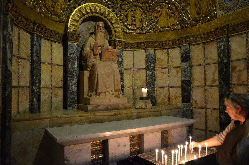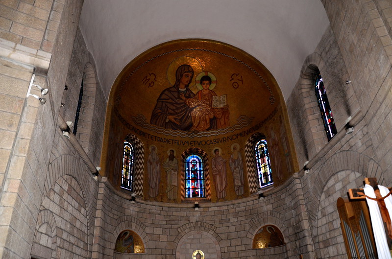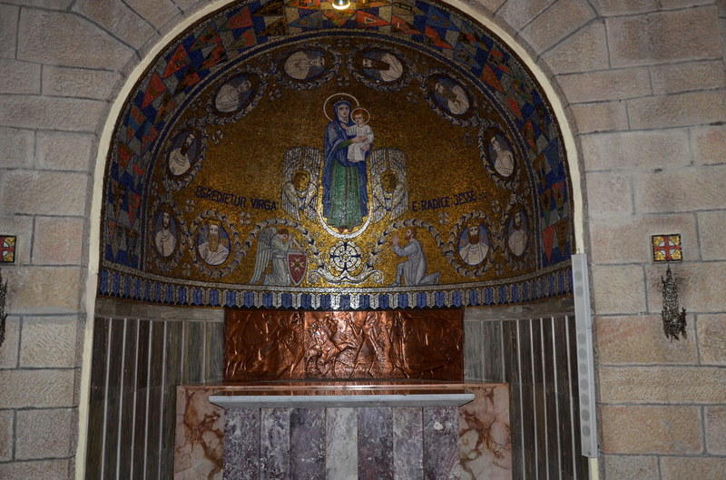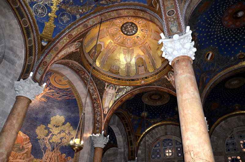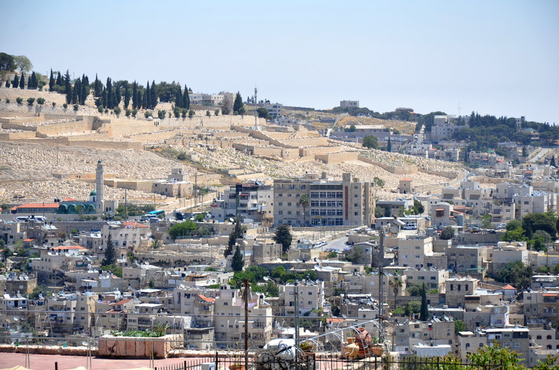 In der Kirche "Davids Grab", mittlerweile wieder eine jüdische Synagoge, ist das Grab von König David und oben der Saal des letzten Abendmahls untergebracht. Ob dies allerdings der tatsächliche Ort dieses geschichtlichen Ereignises ist, wird sehr bezweifelt. Vorbei am "Museum des Holocaust" geht es zurück zum Bus und dann zum Mittagessen. Im "Hotel zum Olivenbaum" werden rund 20 Busse voller Touristen zur gleichen Zeit verköstigt. Ein unmögliches Gedränge. Es bleiben nur 45 Minuten, bevor uns der Reiseleiter wieder zum Bus bittet. Ein letztes Bild vom Ölberg auf die Stadt herunter und es geht nach knapp zehn Minuten weiter in einen Souvenier Shop, vor dem die Busse bereits die Strasse verstopfen und zu einem unmöglichen Verkehrschaos führen. 15 Minuten bleiben, sich den teuren Kitsch an zu schauen. Kaum jemand kauft etwas, auch wenn alles um 50% reduziert wurde. Und dann stehen wir im Stau.
