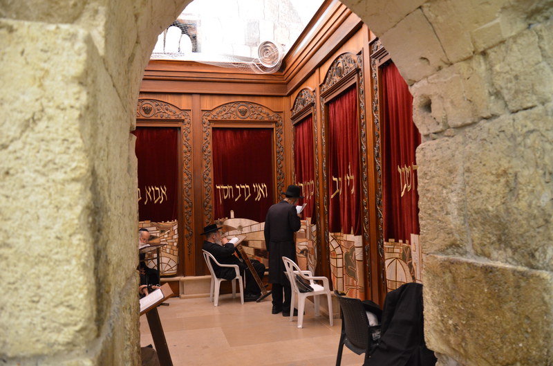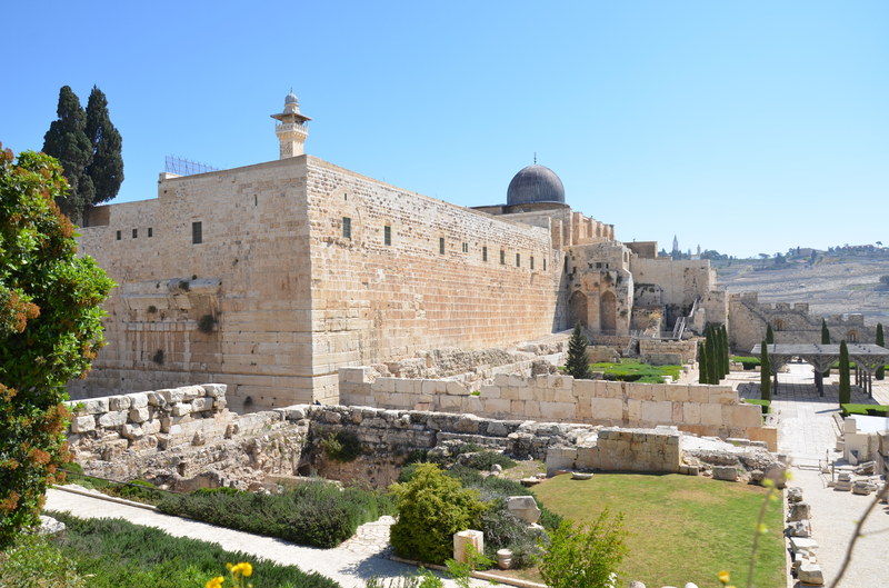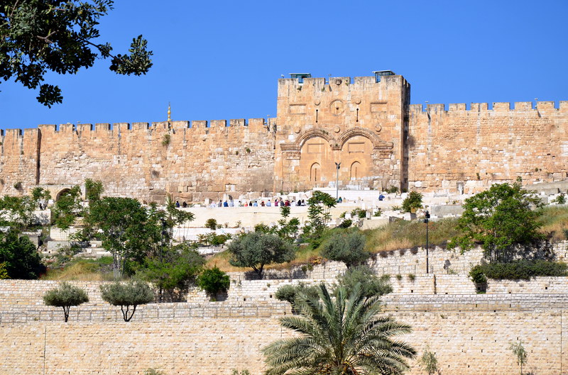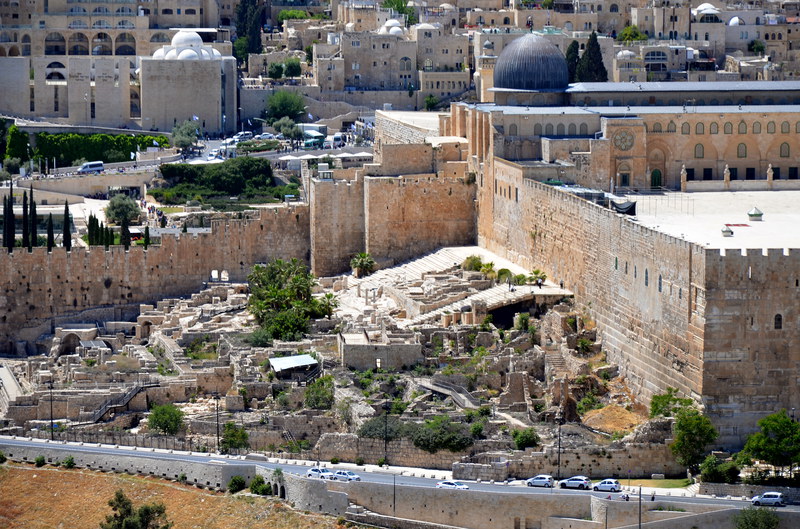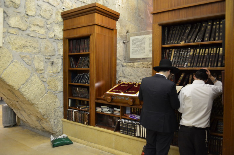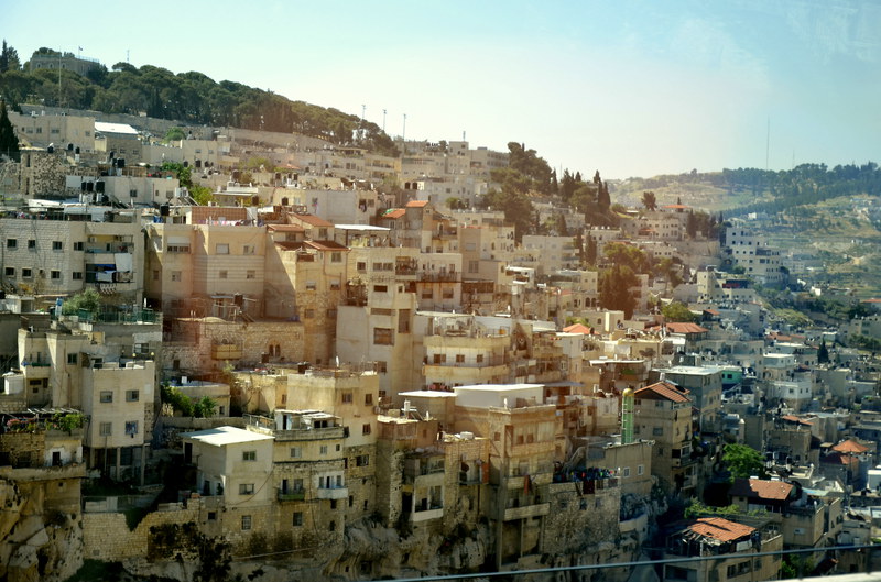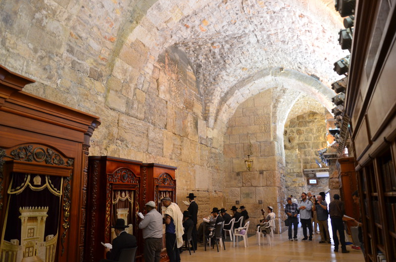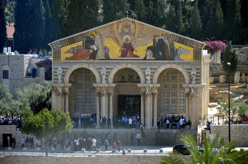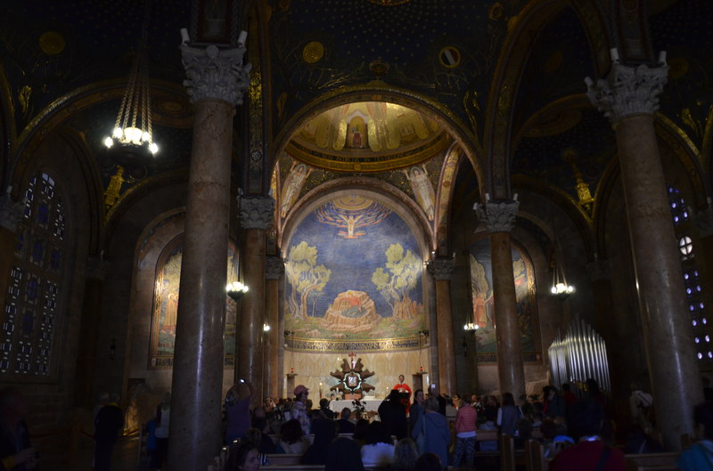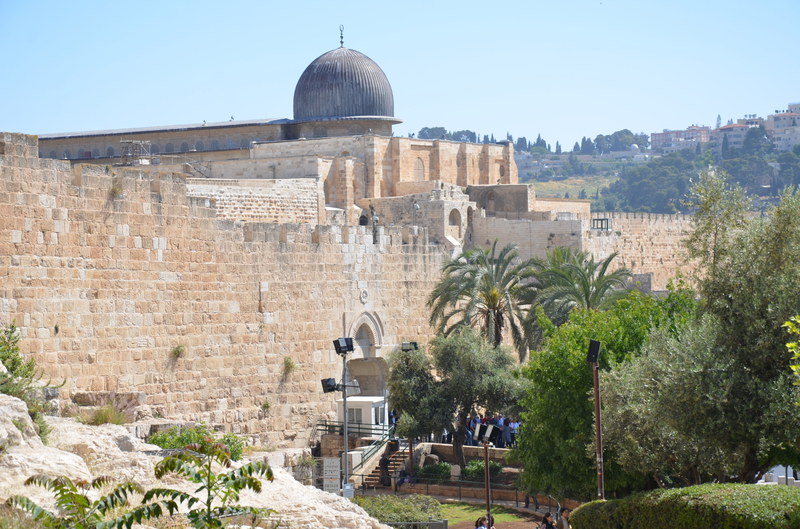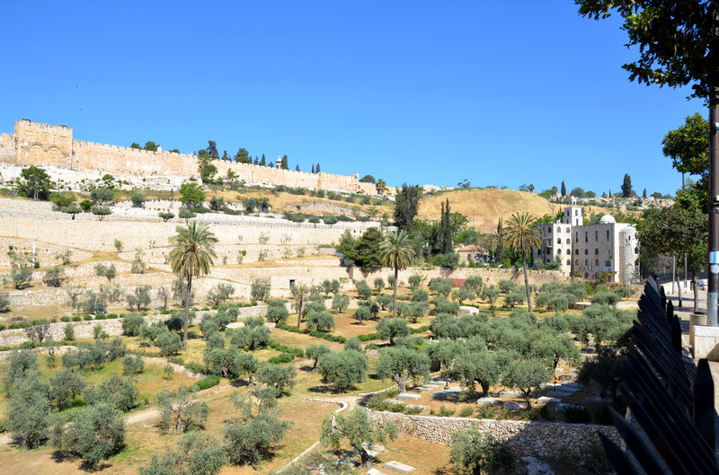 So geht es zunächst in den Garten Gethsemane und die angeschlossene "Basilika der Todesangst". Dort zeigt er uns als wichtigsten Teil den Olivenbaum, den Paul VI. bei seinem Besuch 1964 in Jerusalem gepflanzt hat. Weiter geht es zur Klagemauer. Wir sind erstaunt, wie klein diese ist. Der Teil für die Frauen ist noch wesendlich kleiner, als der für die Männer. Befremdlich ist, die Juden zu beobachten, wie sie beim Beten an der Mauer vor und zurück wippen. Auf dem Weg zum Bus zeigt uns der Reiseführer tiefer unter uns liegend eine uneben, gepflasterte Strasse, auf der es möglich gewesen sein könnte, dass Jesus dort gewandelt ist.