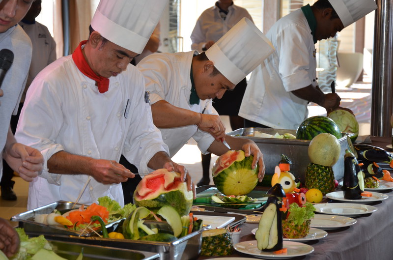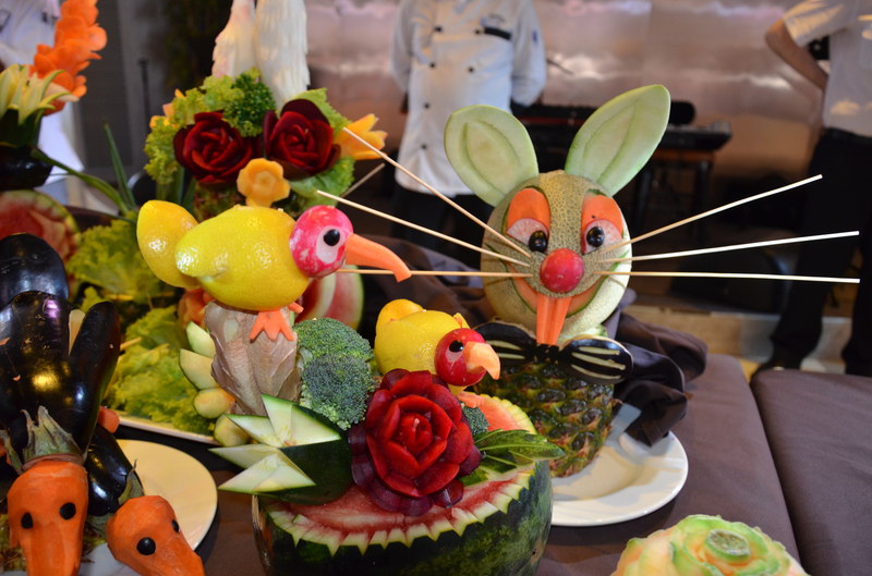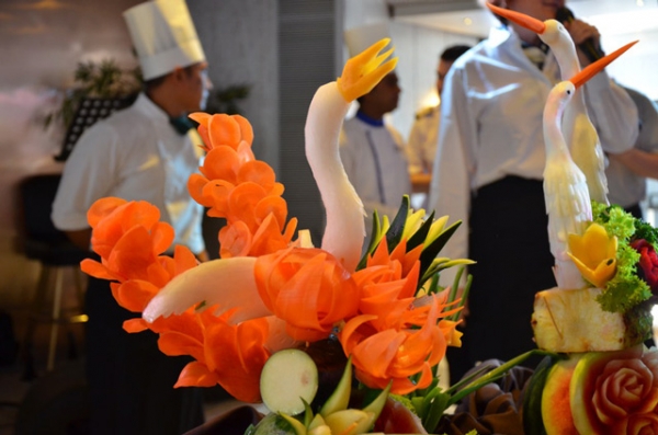 Wir freuen uns über die Sonne, welche uns täglich den weißen Körper mehr und mehr bräunt. Selbst an den Tagen auf See ist immer etwas los. Zunächst hatten wir eine Einladung auf die Brücke. Dort wurden wir mit den nautischen Geräten bekannt gemacht. Abends hatten wir eine 45 Minuten Show eines englischen Tenors. Nette Unterhaltung, nachdem uns die Comedy Show am Abend zuvor so gut gefiel, dass wir sie nach fünf Minuten verlassen haben. Der englische Humor ist für uns undurchschaubar, zumal die englischen Dialekte ebenso verständlich sind, wie wenn sich zwei Deutsche in bayrischem und badischem Ur-Dialekt unterhalten. Dagegen war der Wettbewerb des Obst- und Gemüseschnitzens sehr interessant. Die Ergebnisse seht ihr in den anhängenden Bildern. Welch eine Fingerfertigkeit.