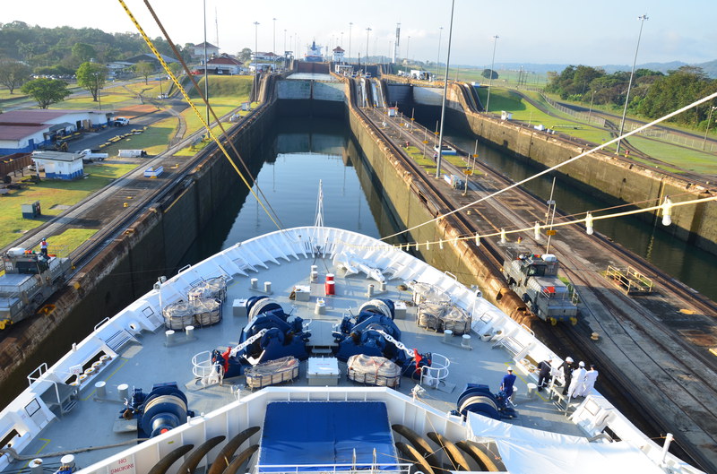 Nach dem Anheben unseres Schiffes auf die Höhe des Gatun Sees, fuhren wir rund acht Stunden bis zur nächsten Schleuse, die uns auf die Höhe des Pazifiks absenkte.