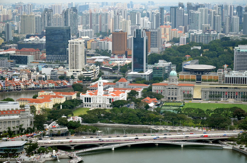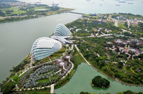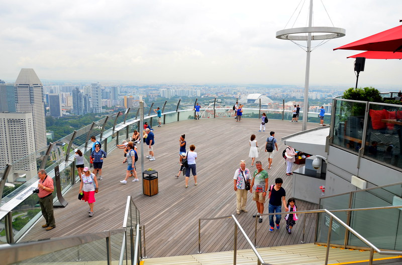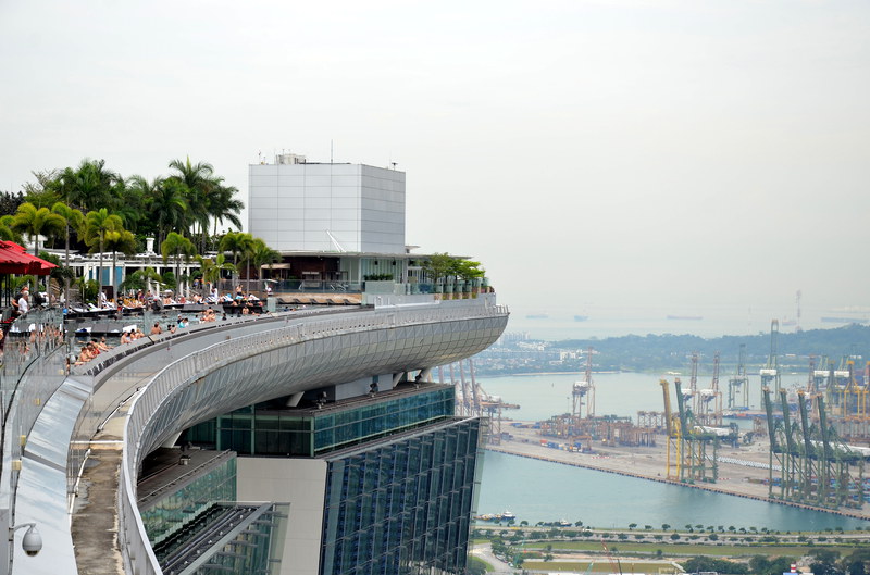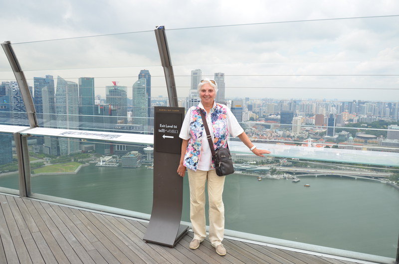 Schon kurz nach dem Frühstück wollen wir das Schiff verlassen, was durch die enorm lange Schlange an der Einreisestelle nicht ganz leicht ist. Wir brauchen fast 45 Minuten, um die Formalitäten hinter uns zu bringen. Und dann geht die Suche nach dem Tagespass für die Bahn los. Wieder eine unendliche Schlange. Wir kaufen gleich für neun Leute den Pass, die alle nach uns gekommen sind und sich so das Anstehen sparen. Mit der Bahn - ein fast identisches Sytem wie in Hongkong - sind wir schnell an dem neuen Hotel, The Sands. Gigantisch, wenn man im Foyer der drei riesigen Türme steht, noch gigantischer, wenn man auf dem Skywalk im 56. Stock über die Stadt schauen kann. Trotz meiner Höhenangst geniesse ich diesen Ausblick. Natürlich treffen wir hier andere Mitreisende. Alle sind begeistert von diesem Wunderwerk der Architektur. Allerdings ist auch der Preis für die Auffahrt nicht ganz ohne: 23 S$ = 15€.