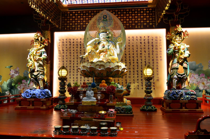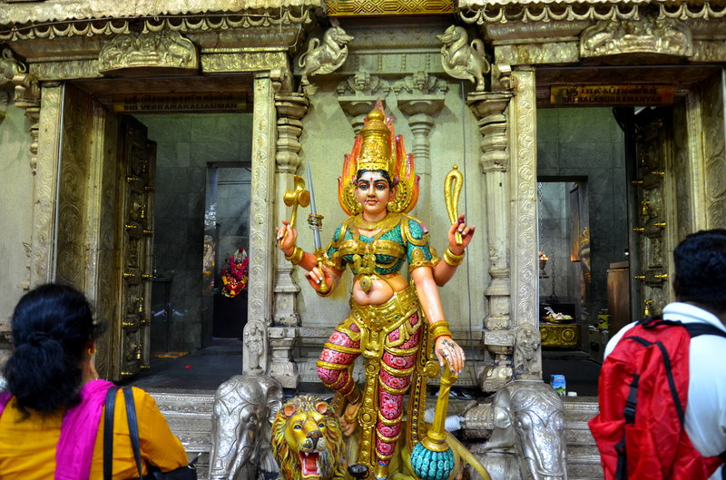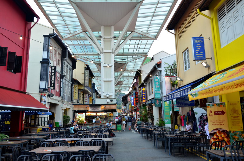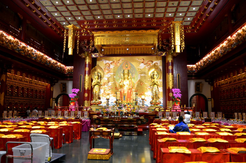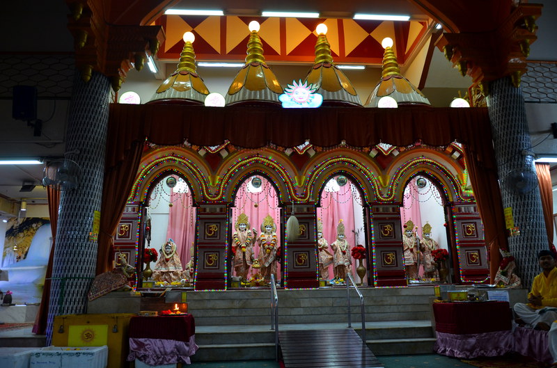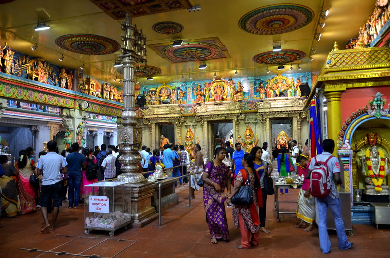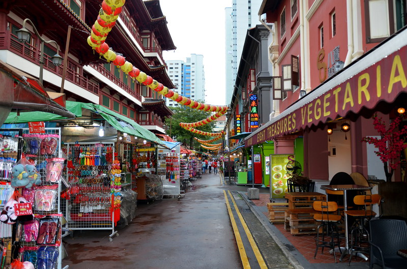 Nur wenige Haltestellen weiter, begrüßte uns die "China Town" und viele Mitreisende vom Schiff. Ein echt chinesisches Viertel. Trotz einsetzendem Regen schlendern wir durch die vielen, kleinen, zusammen hängenden Verkaufsläden. Die kleinen Häuser mitten in der Welt der Hochhäuser und die 100-te roten Ballonlampen geben dem viertel einen besonderen Charm. Am Ende der Strasse stehen wir vor einem Tempel der Hindus. Wenige hundert Meter weiter sind wir im gesuchten buddhistischen Tempel mit hunderten Statuen von Buddha und tausenden von kleinen Buddha Figürchen. Im 4. Stock ist dann das Heiligtum: ein Zahn Buddhas. Weltweit gibt es so viele "Zahntempel", dass die Frage erlaubt sein muss, wie viele Zähne Buddha wohl gehabt hat. Unsere nächste Station war dann "little India". Auch hier ein kleines Geschäft am nächsten. Ganze Strassenzüge von Obst- und Gemüseläden, Gold und Juwelen, Stoffe und Haushaltswaren. Auch hier eine erschlagende Vielfalt von Eindrücken. Auch mehrer Tempel sind zu sehen, in denen die Hindus die "Abendzeremonie" feiern. In dieser Zeremonie wird die Göttin ins Schlafgemach zu ihrem Gott gebracht und mit Liedern und Tänzen gebeten, noch viele Götter in die Welt zu bringen. Nach einer Kokosnuss zur Erfrischung machen wir uns auf den Weg zurück aufs Schiff, wo wir gerade noch richtig zum Abendessen kommen. Den Abend verbringen wir auf dem hinteren Deck, wo uns die vielen Lichter der Stadt und die Lampen der Hochseilbahn, die genau über das Schiff fährt faszinieren. Wir sitzen bis nach 23 Uhr da und betrachten das quirrlige Leben rund um uns herum.