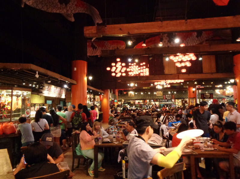 Wir treffen Monika, eine Mitreisende aus Kehl, die ebenfalls ganz begeistert von der herrlichen Anlage ist. Wir gehen in der Food Mall gemeinsam koreanisch Essen. Aus rund 30 verschiedenen Lokalen begeistert uns das Angebot des Koreaners am meisten. Eine tolle Suppe mit Nudeln und Gemüse, mit Fisch und Huhn. Dazu verschiedene Beilagen und Gewürzsoßen. Mit einer Flasche Wasser zahlen wir pro Person eben mal 7 € - und sind satt, wie selten.